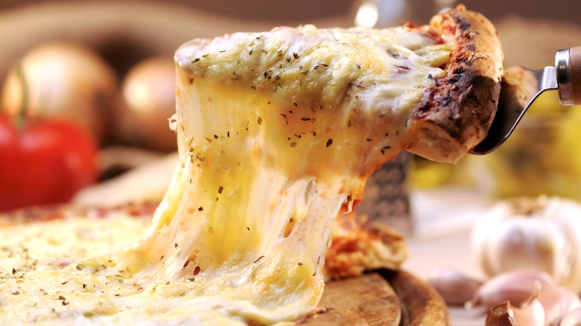 Пицца тянется сыр