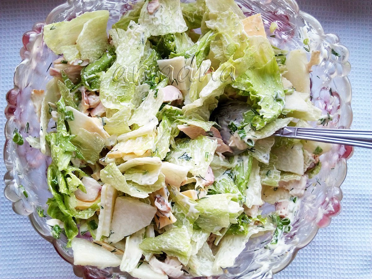 Салат с копченой курицей и салатом Айсберг
