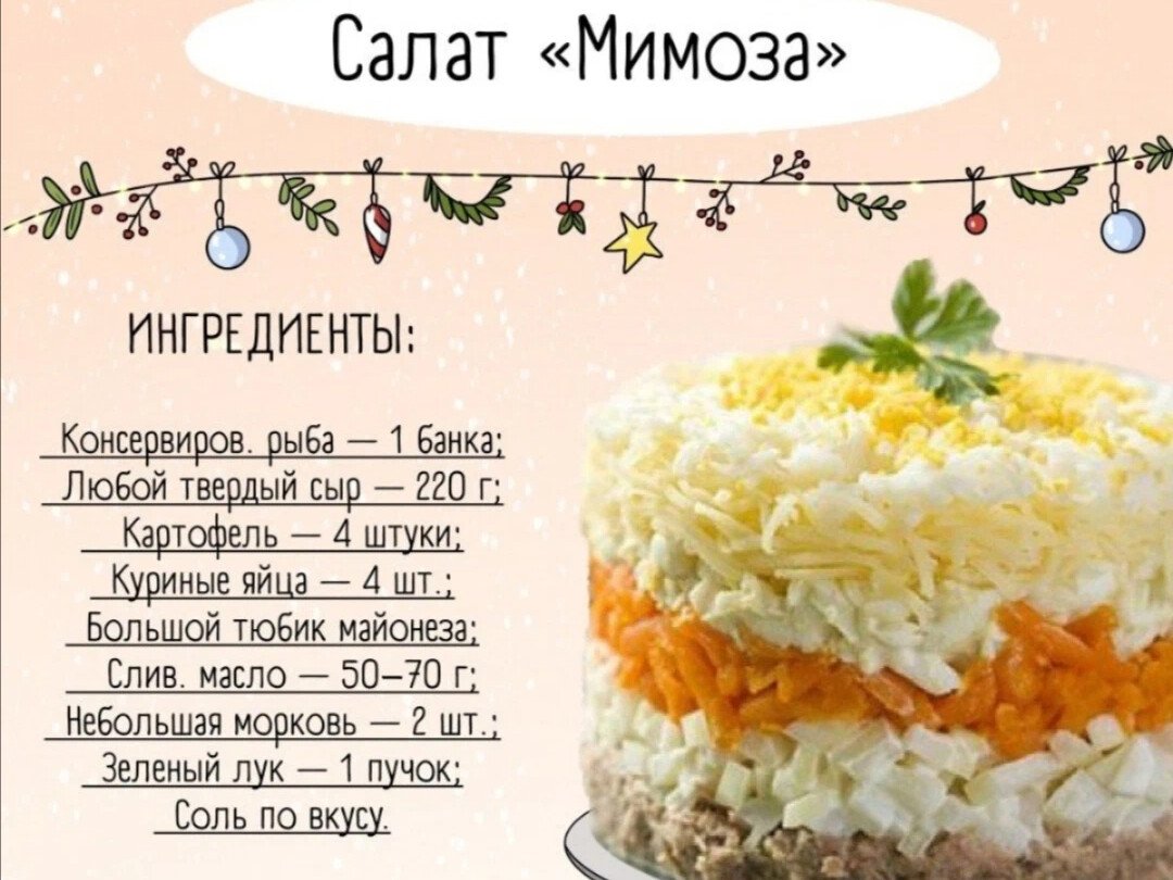Салат Мимоза поочередность слоев