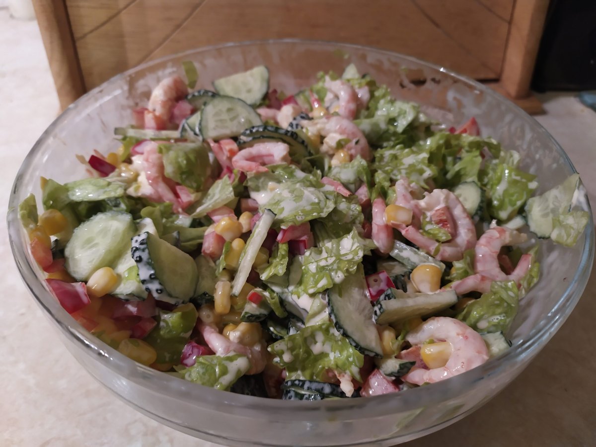 Салат морской Бриз с креветками и кальмарами
