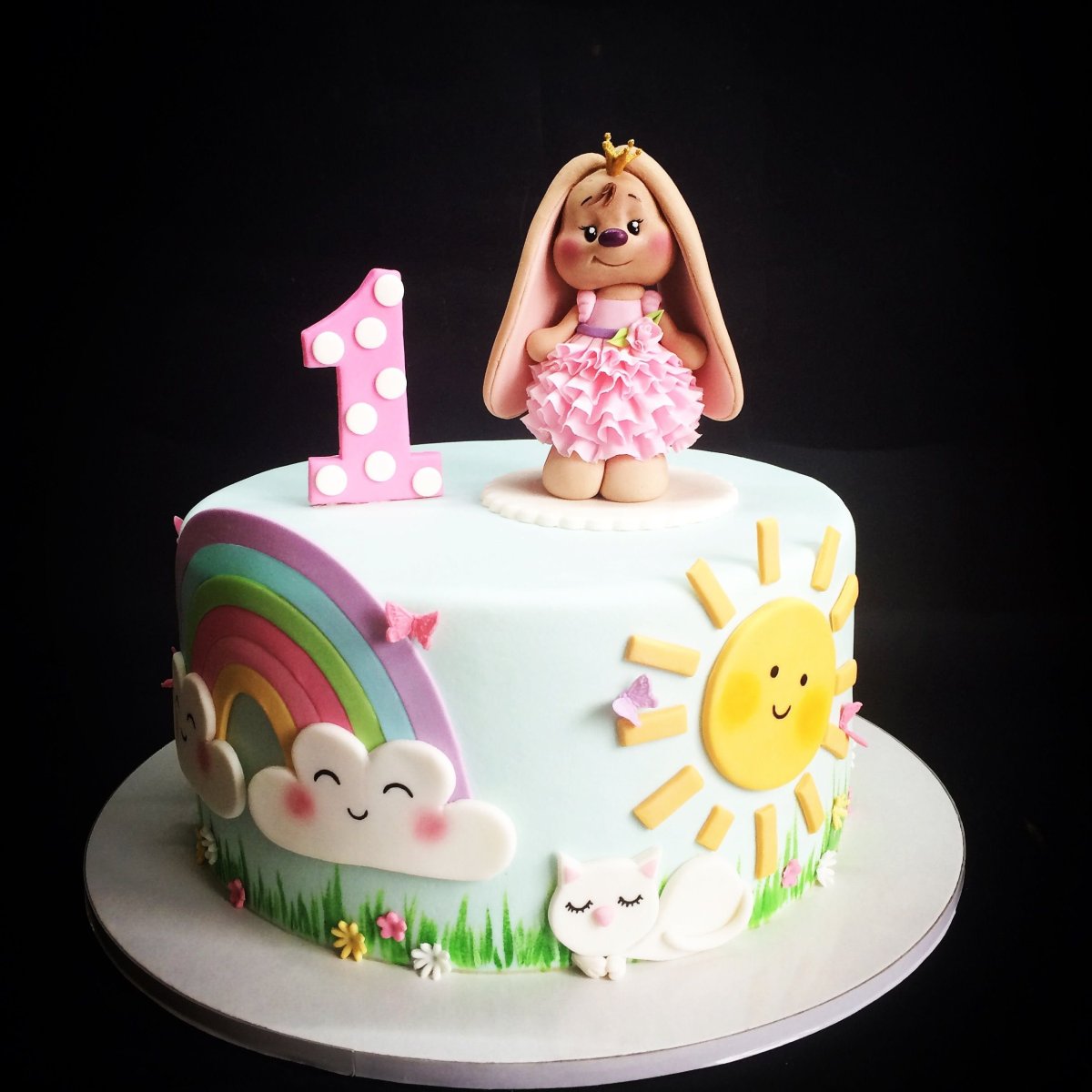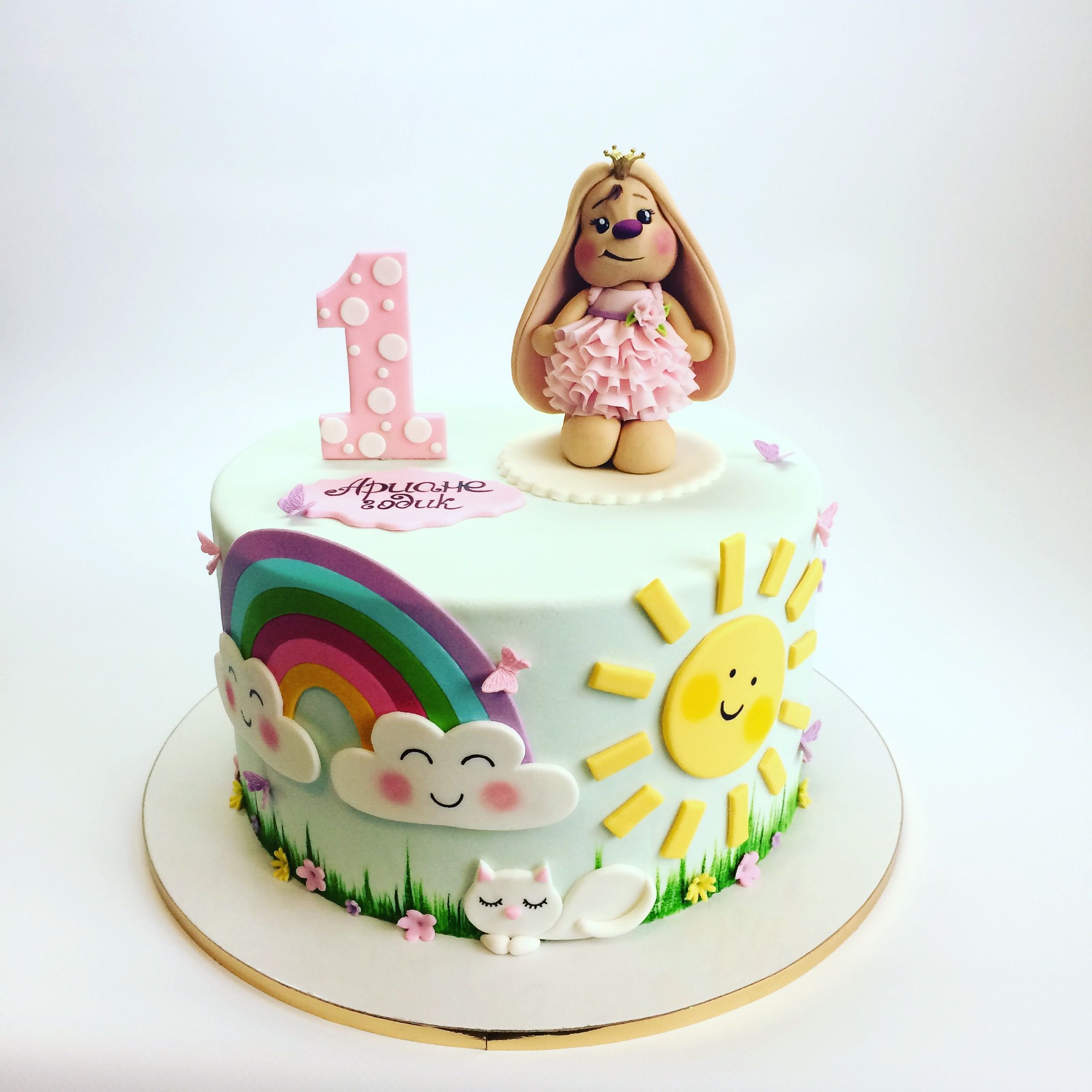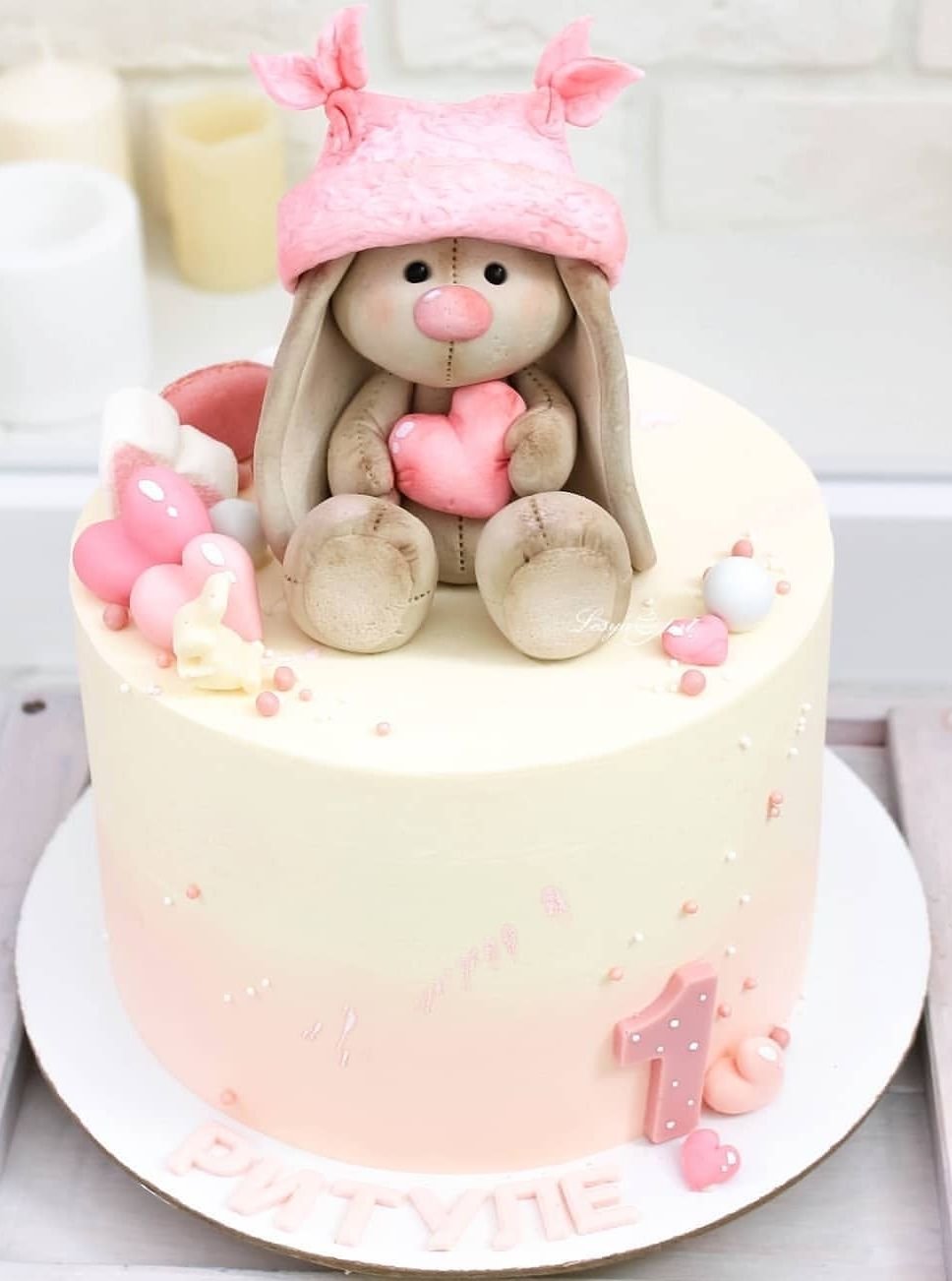 Торт на 1 годик девочке с зайчиком