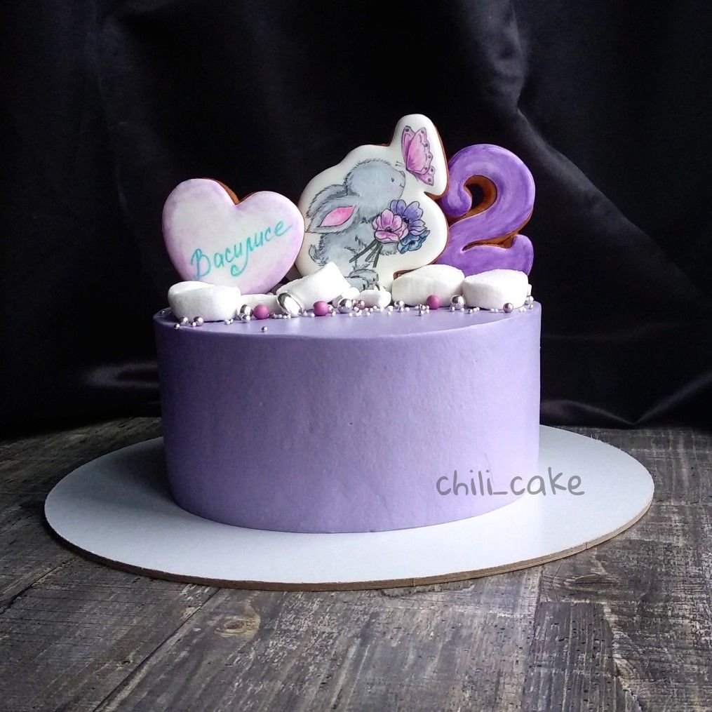 Торт на годик в фиолетовых тонах