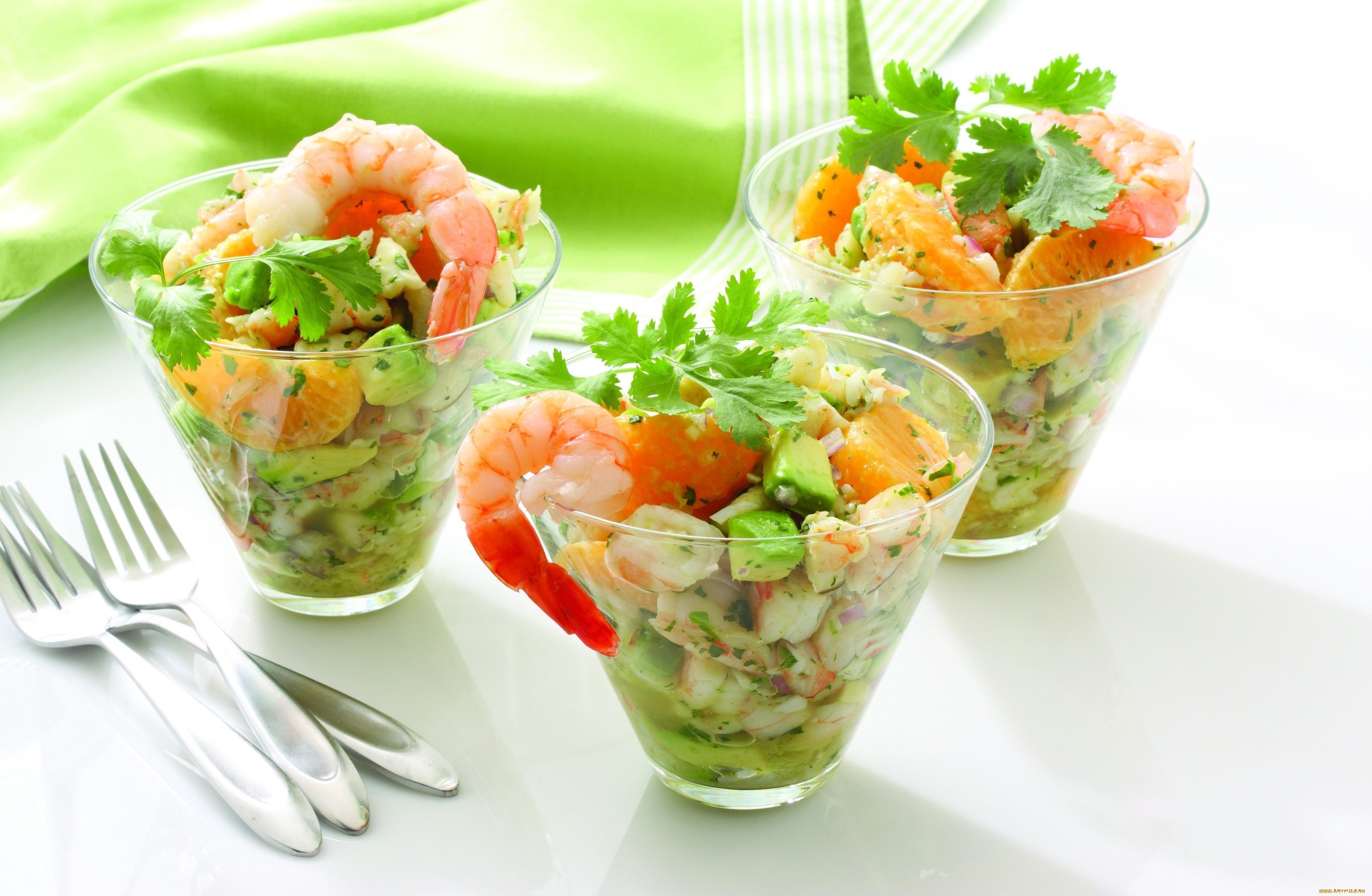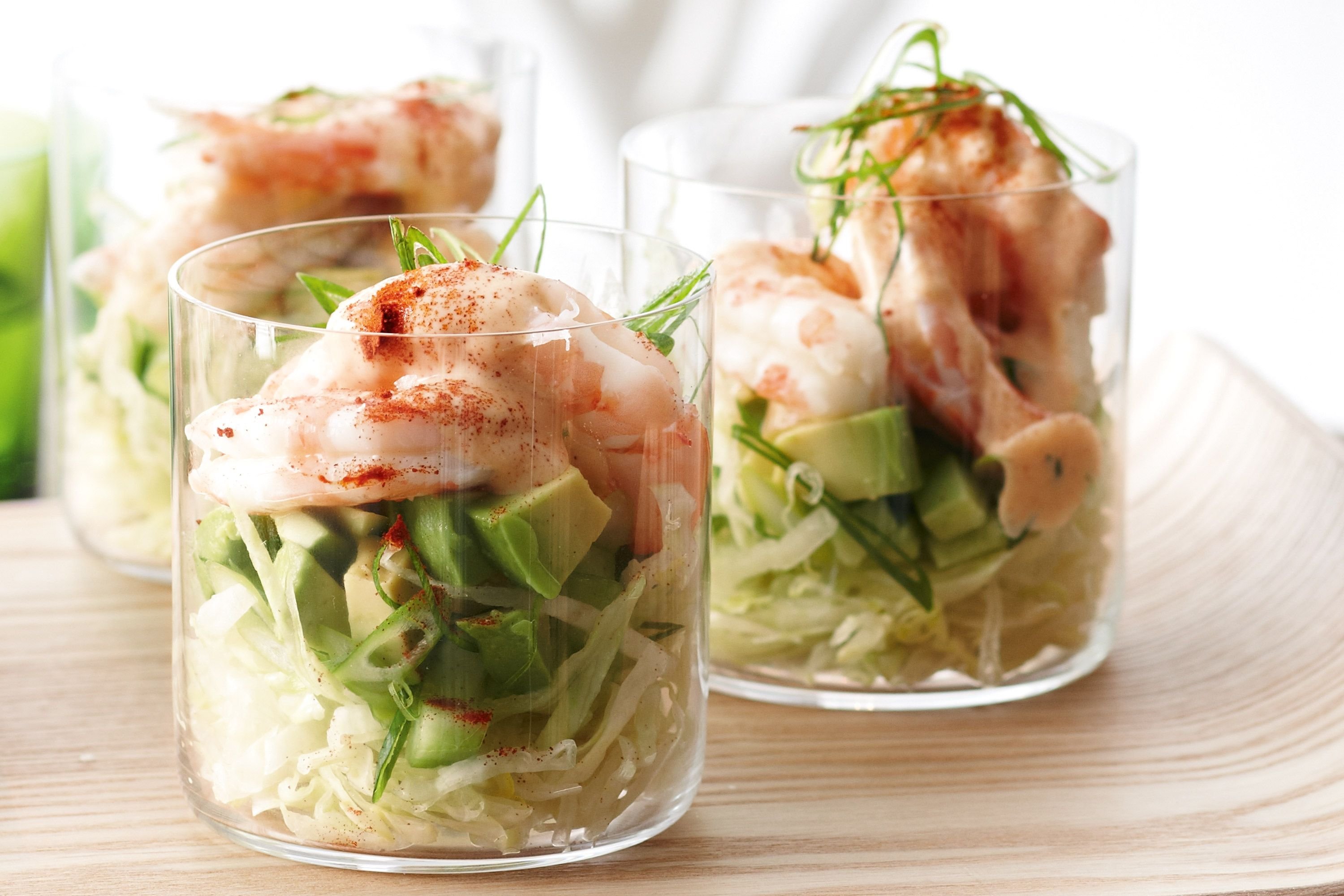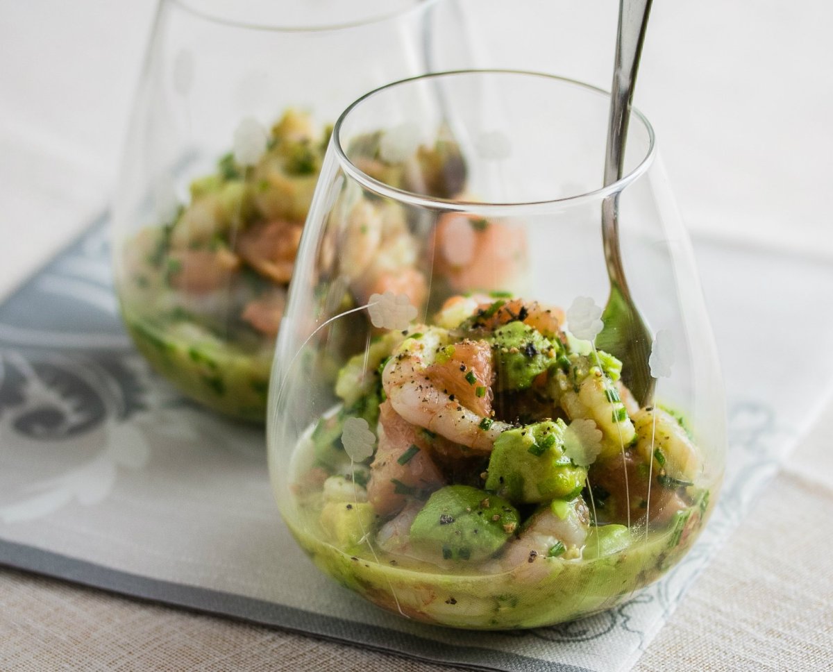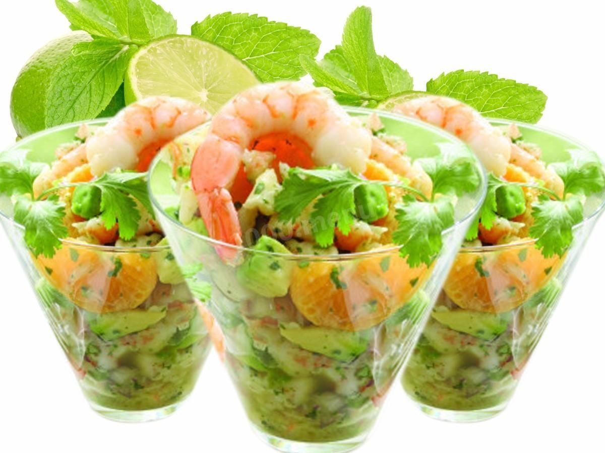 Салат с креветками и авокадо в стакане