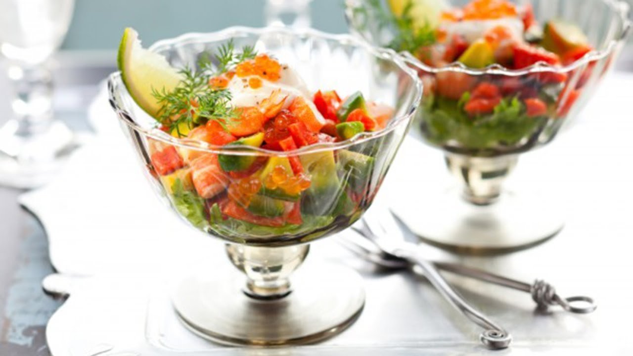 Салат коктейль с креветками в креманках