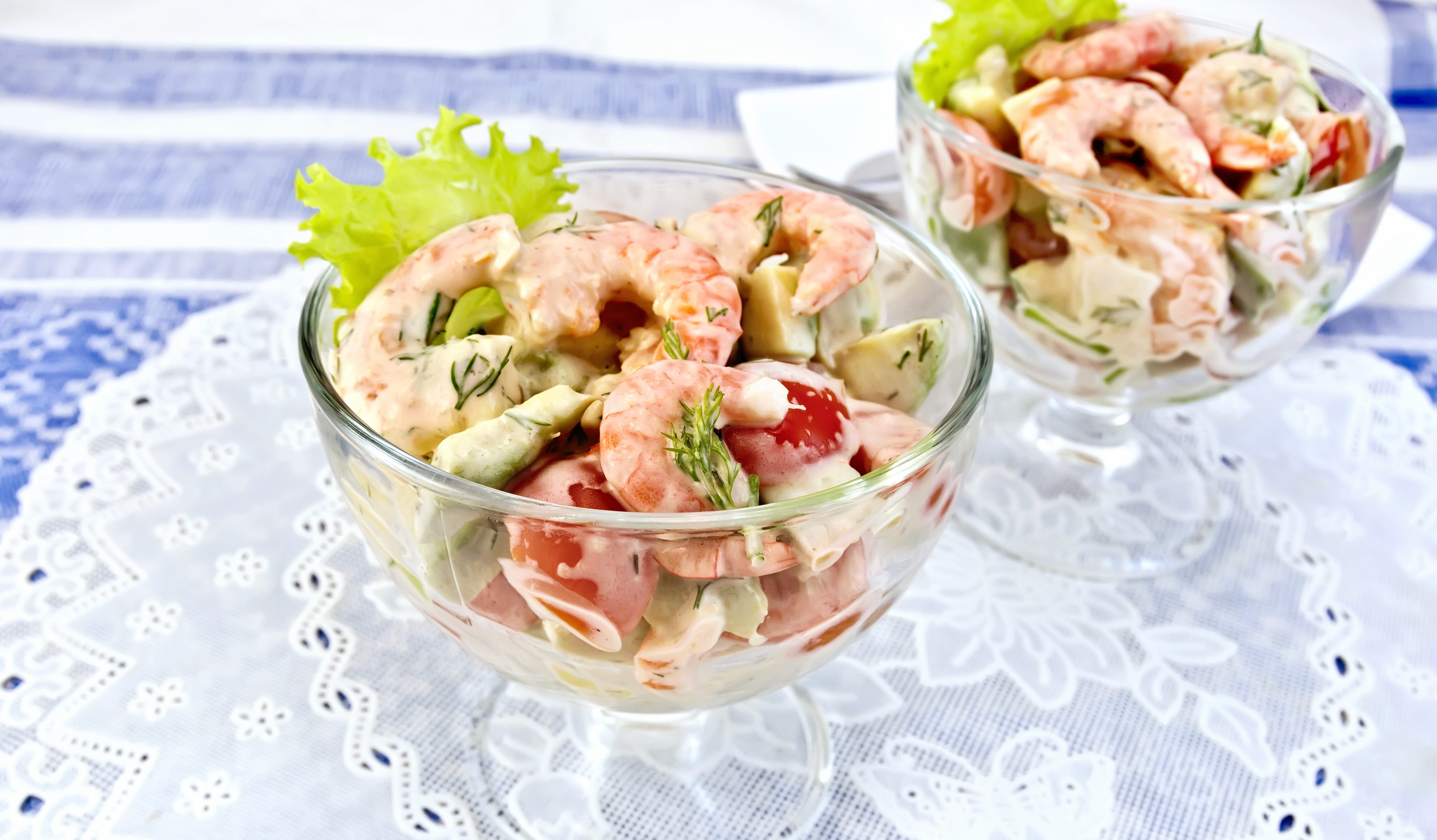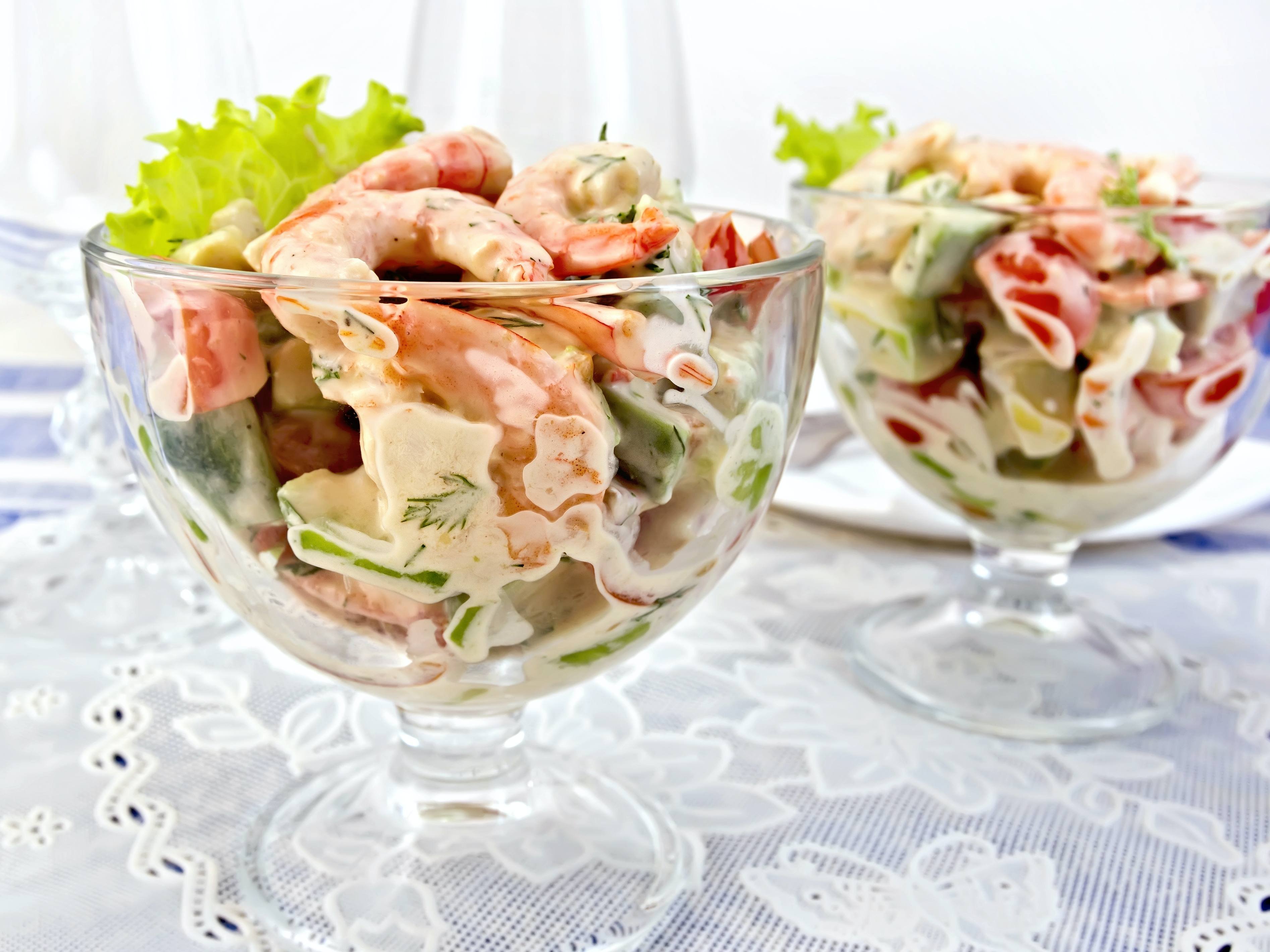Салат в креманках с креветками