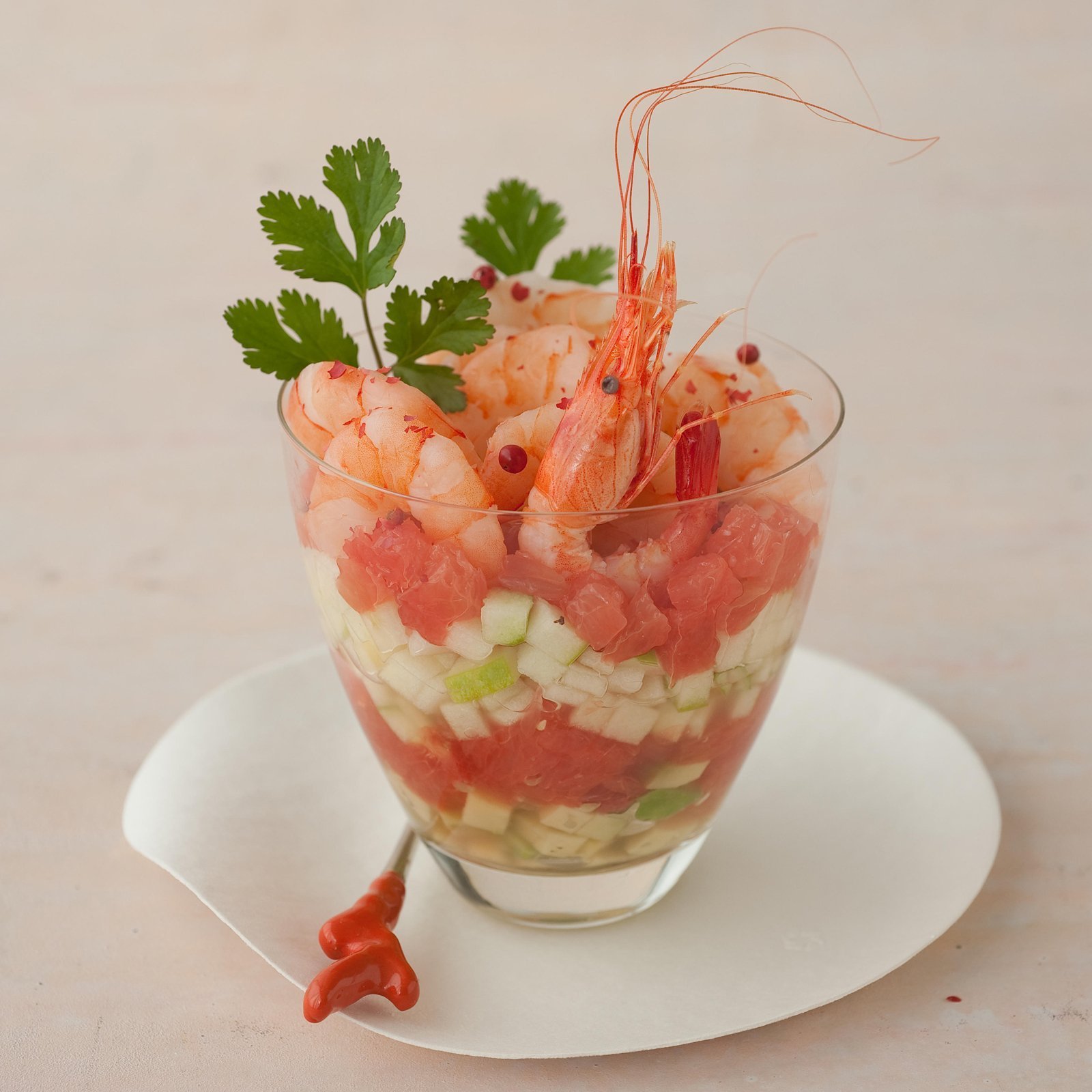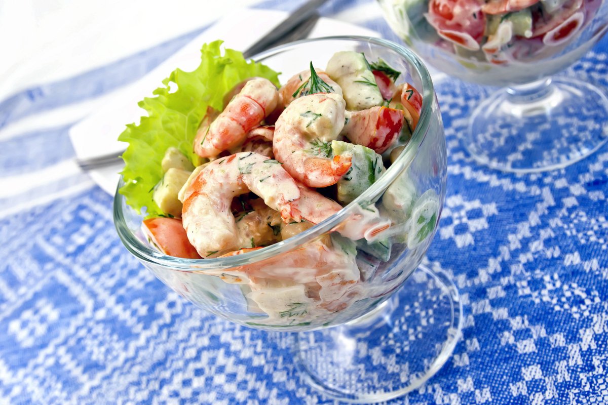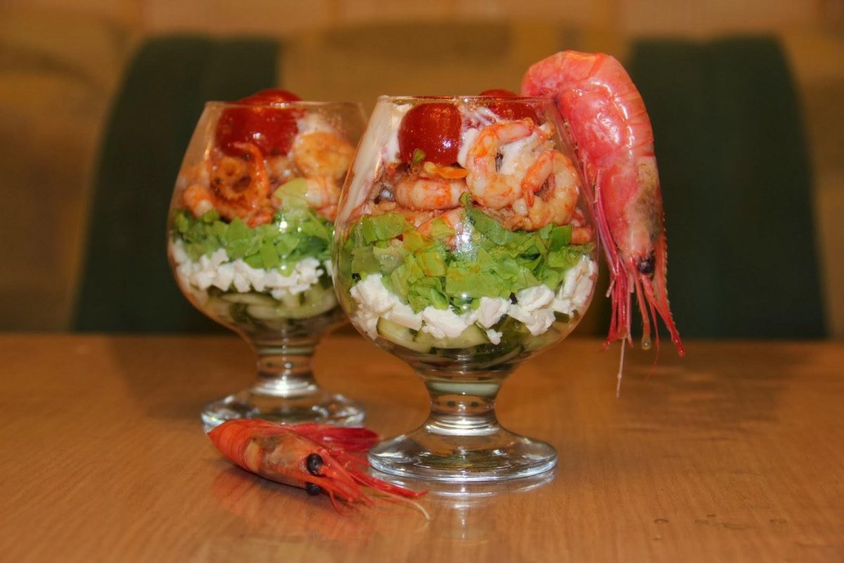 Салат в бокале с креветками
