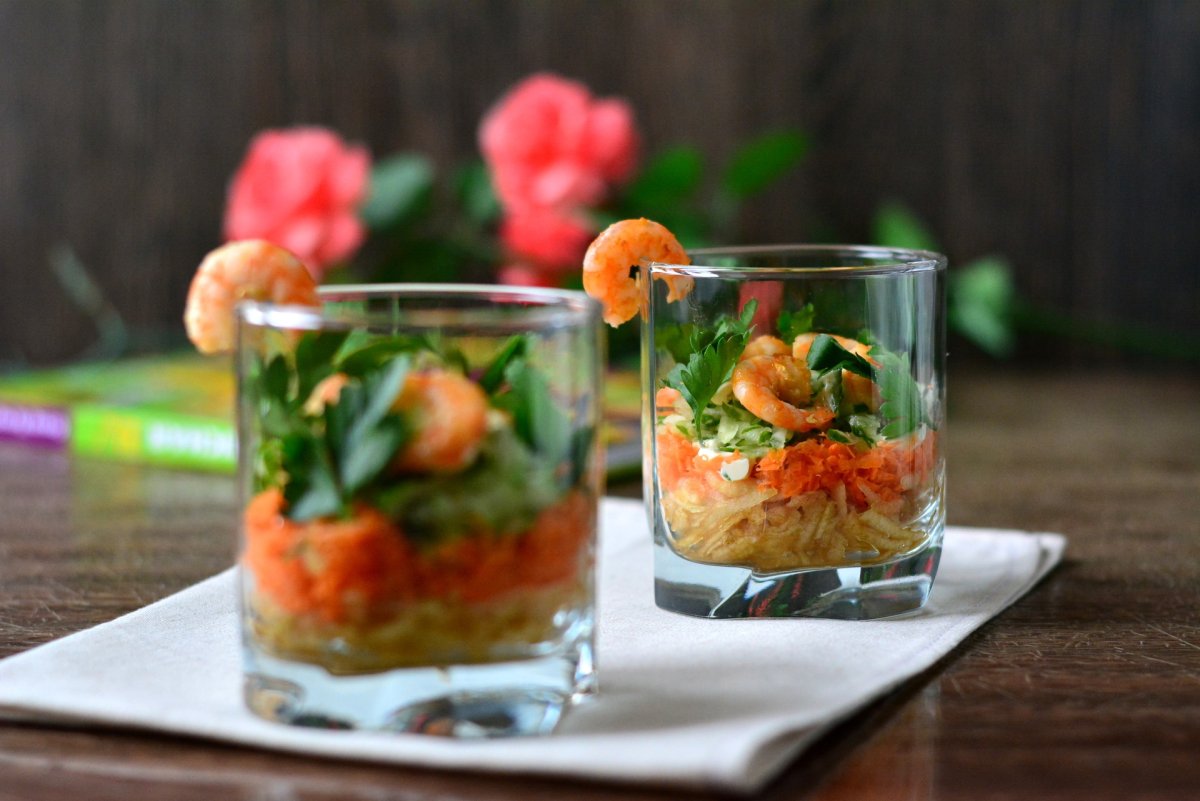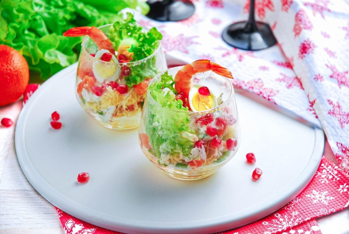 Салат в стаканчиках с креветками