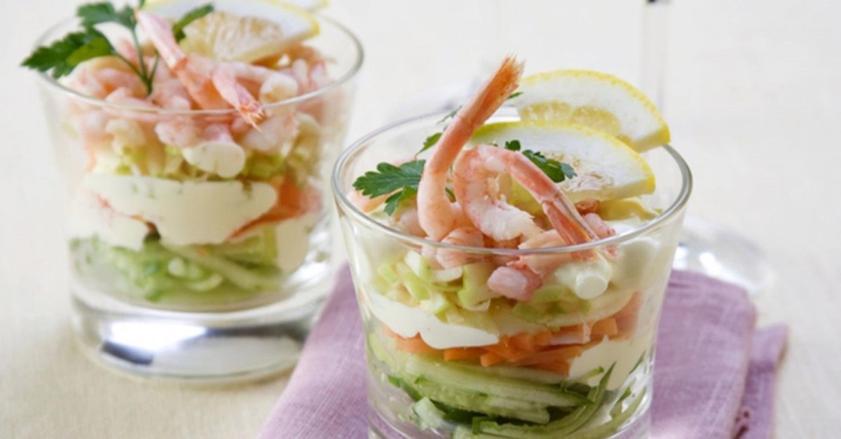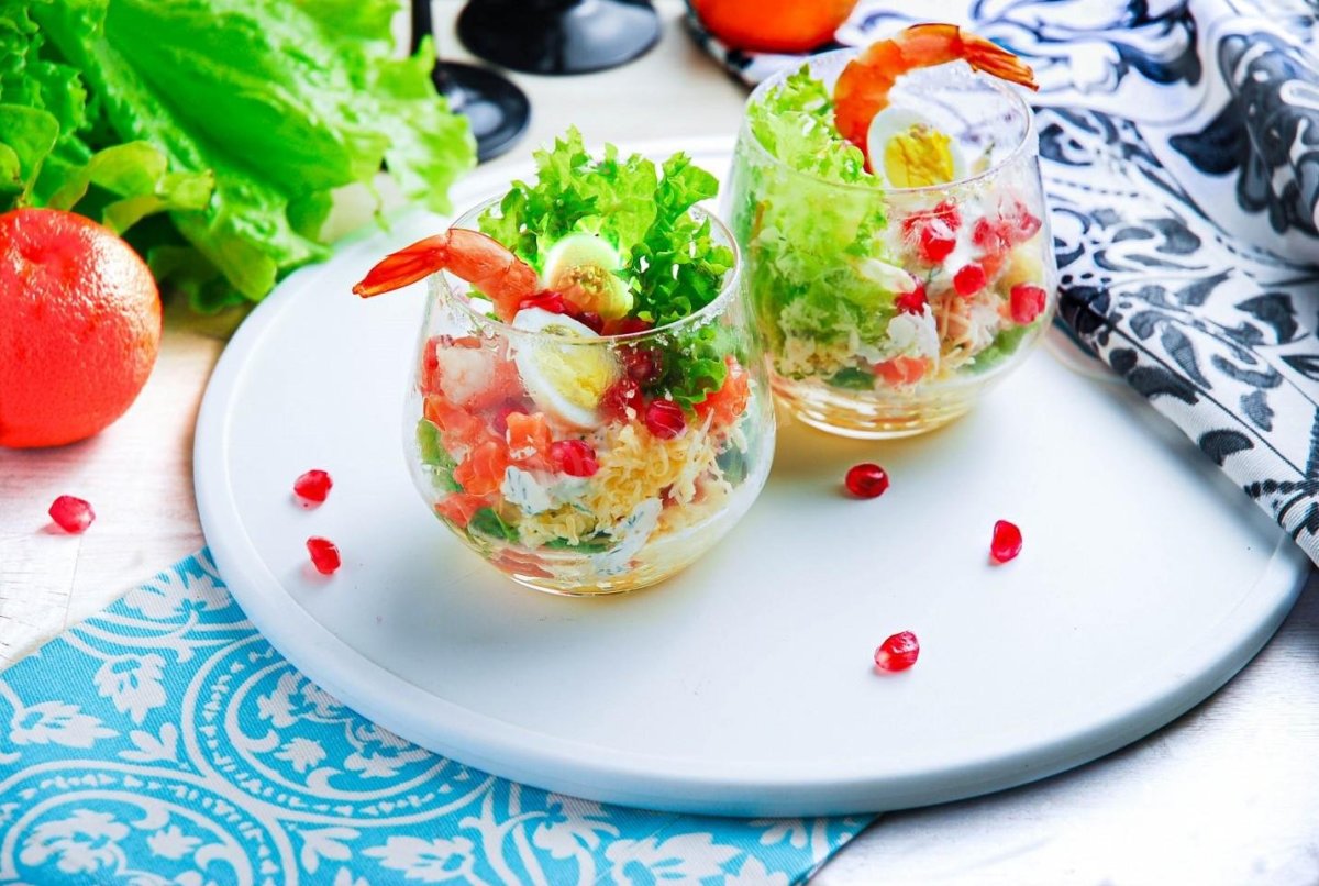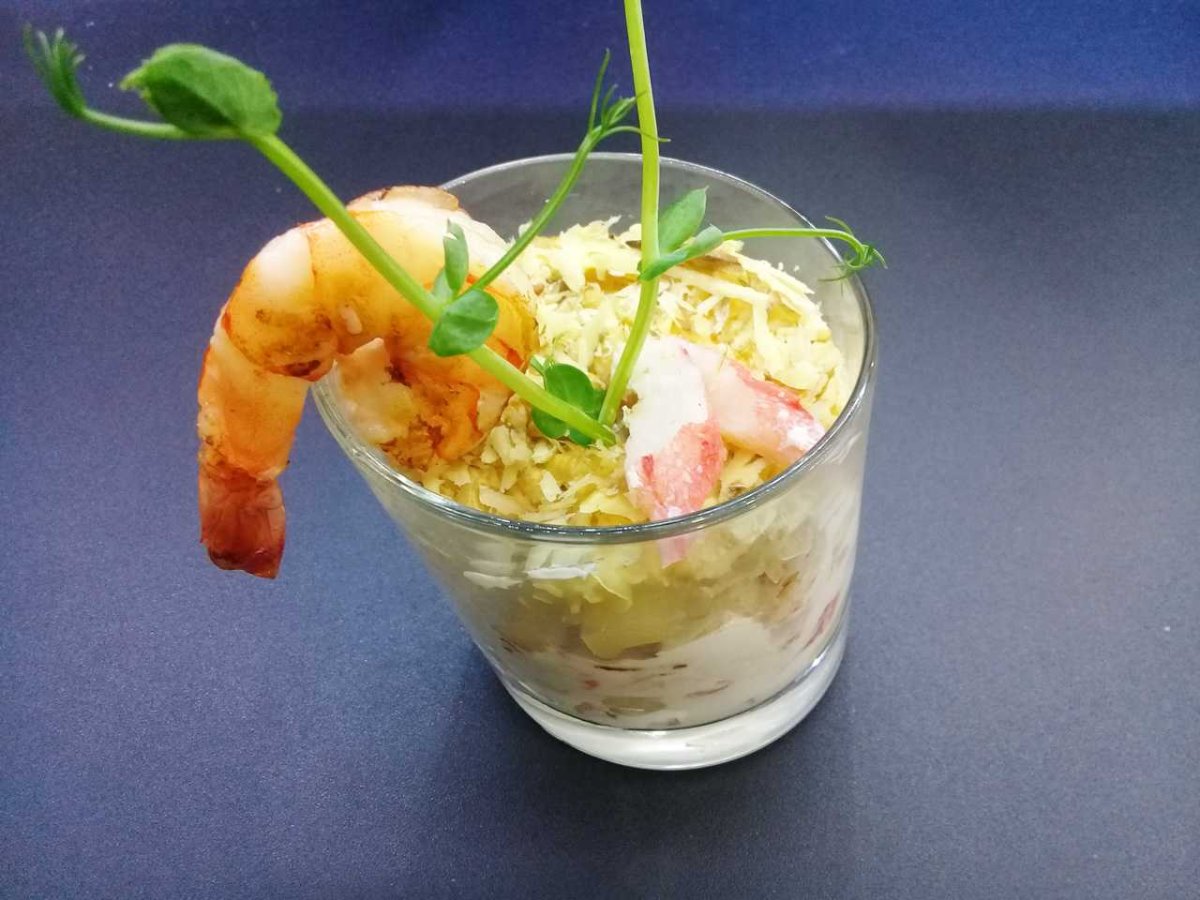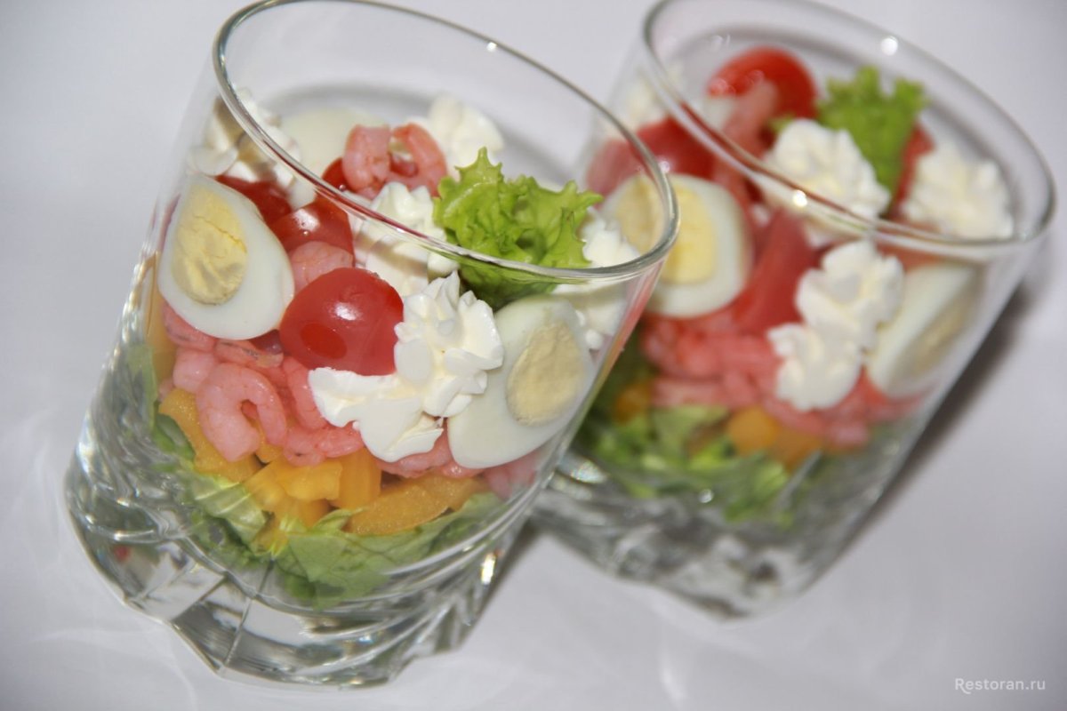 Салат с креветками в стакане