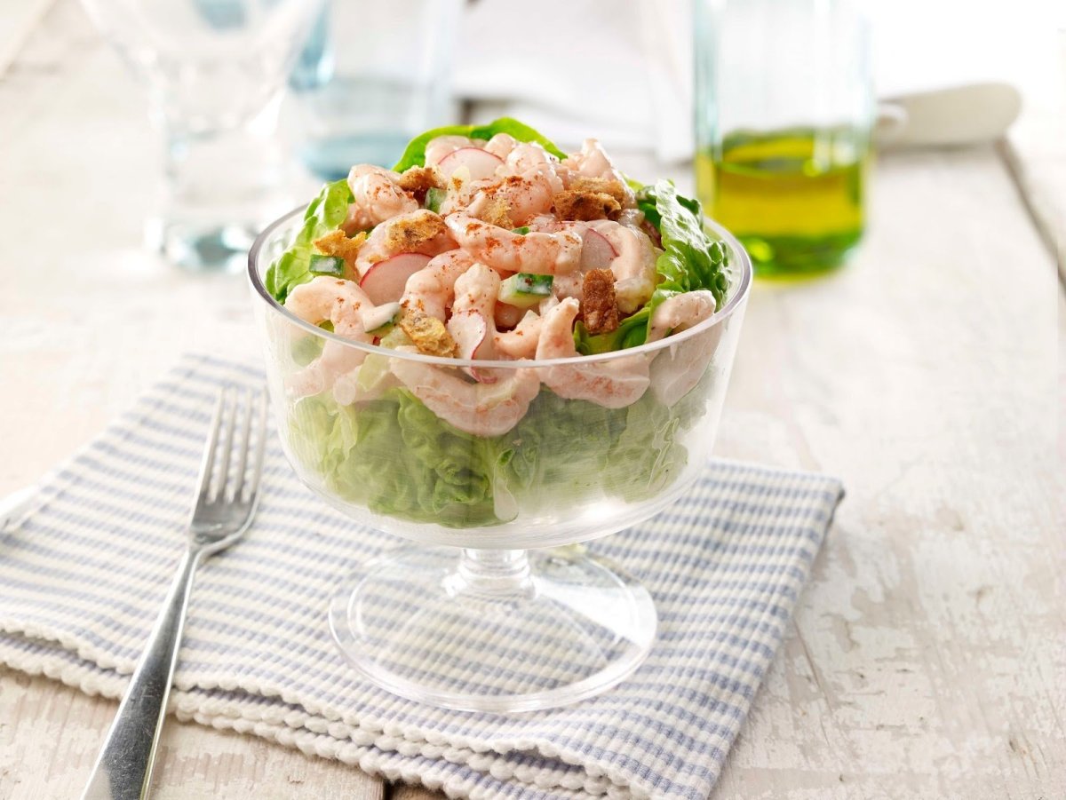 Салат с коктейльными креветками