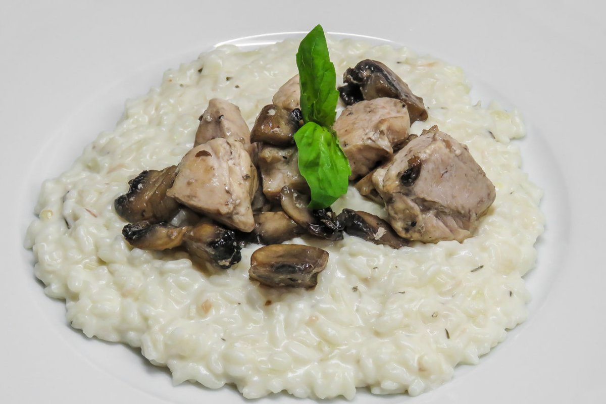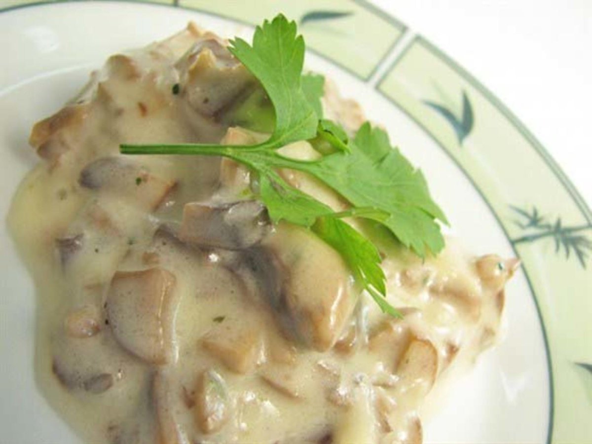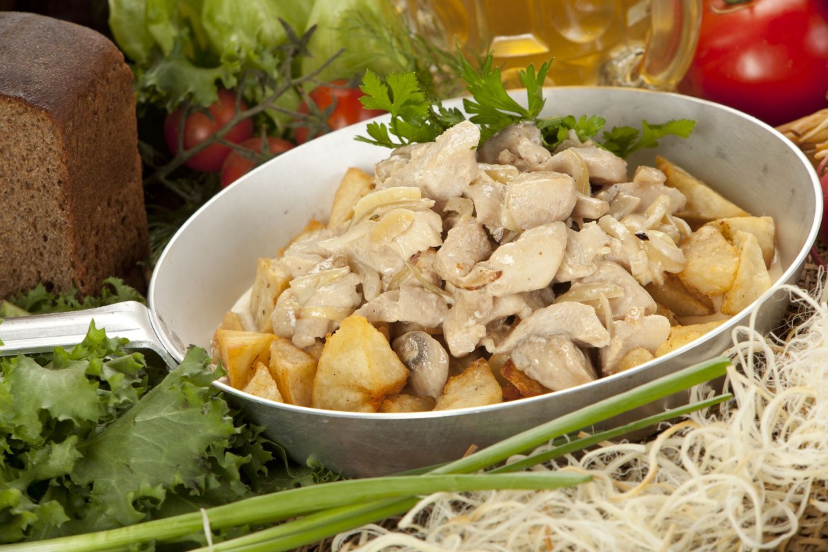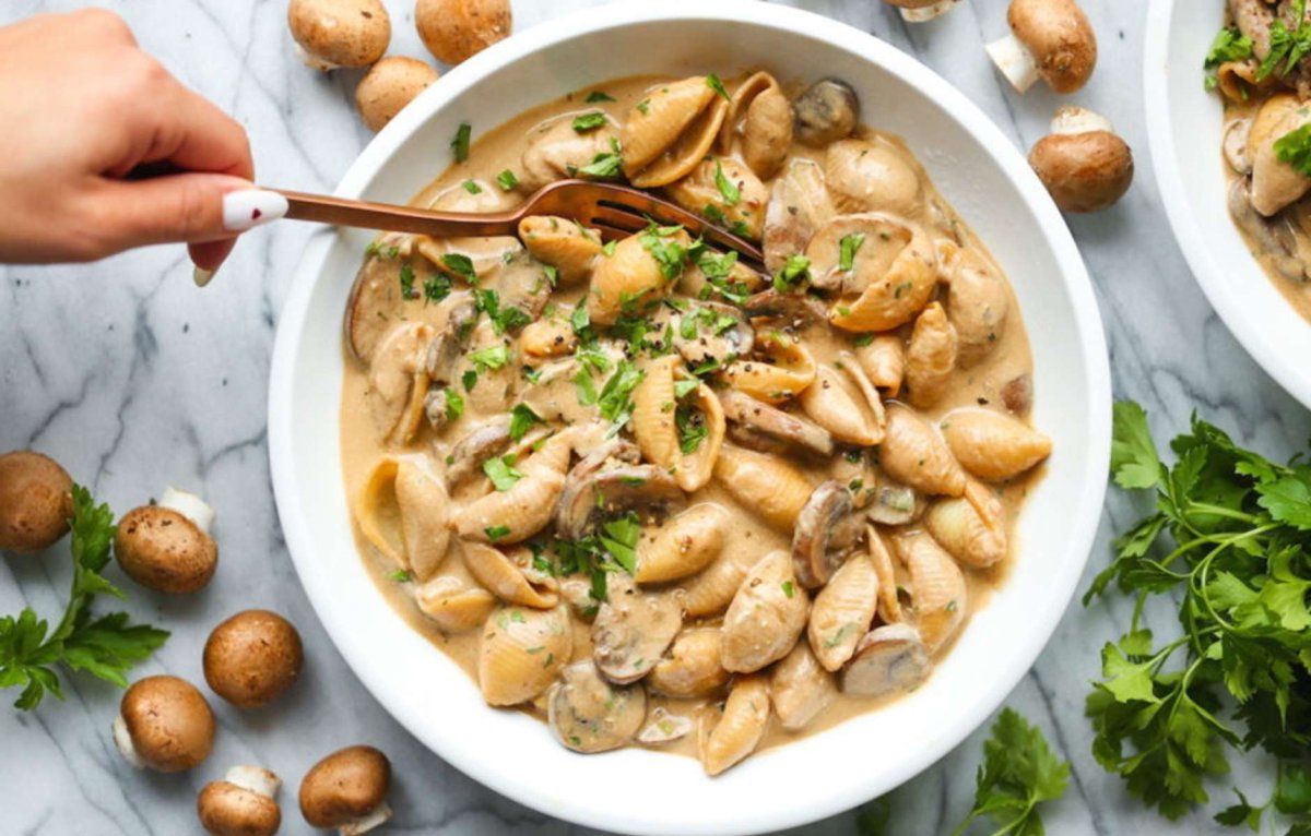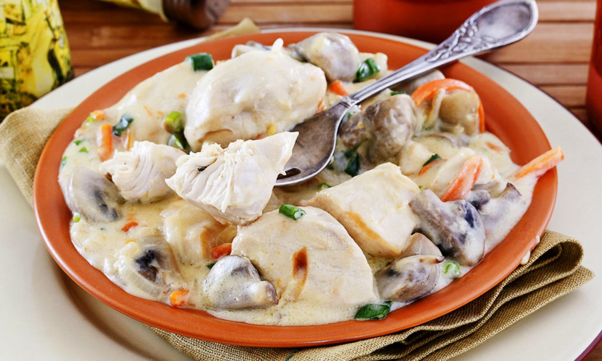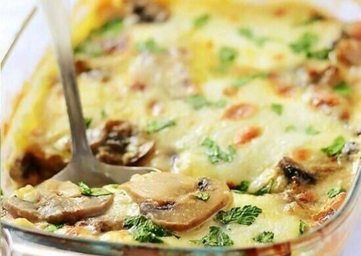 Паста с грибами и курицей в сливочном соусе и курицей.