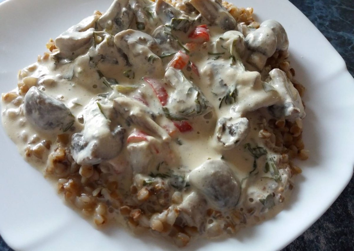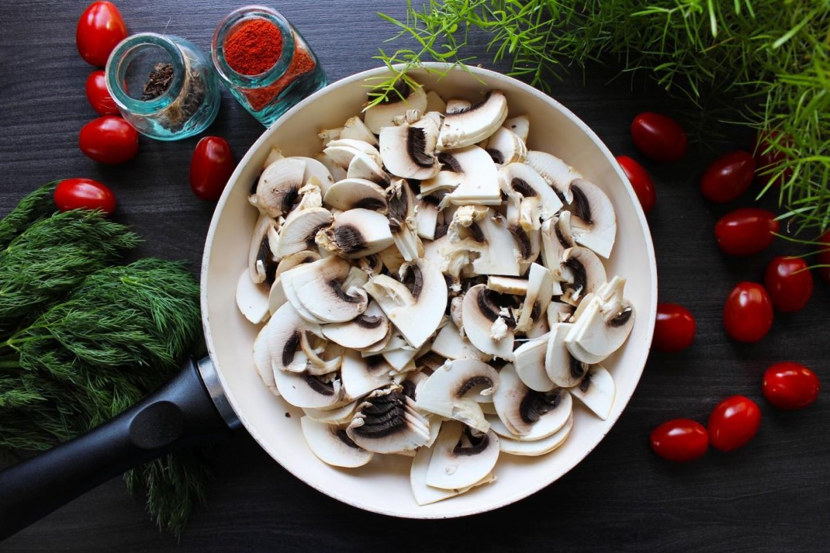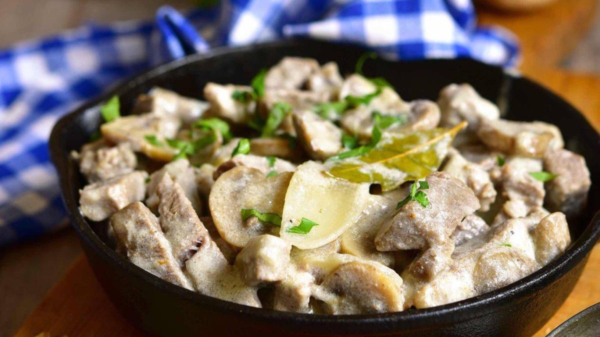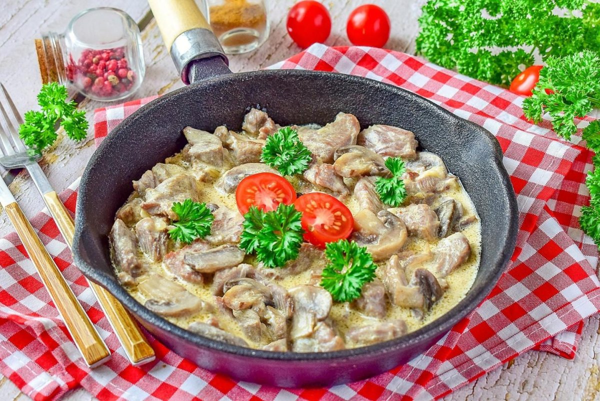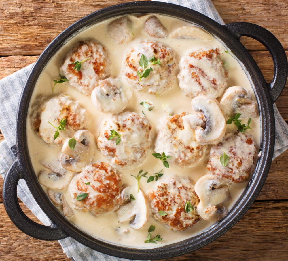 Фрикадельки с грибами в сливочном соусе на сковороде