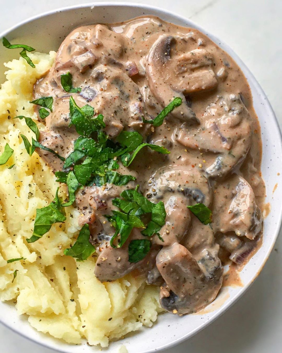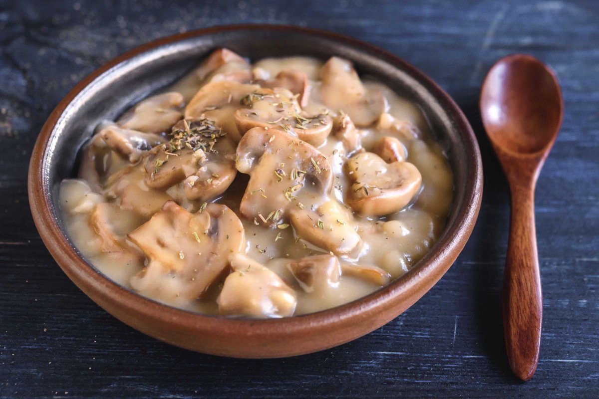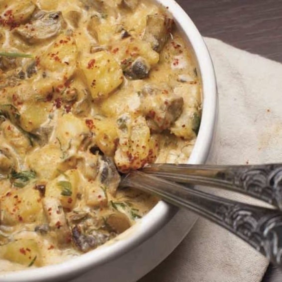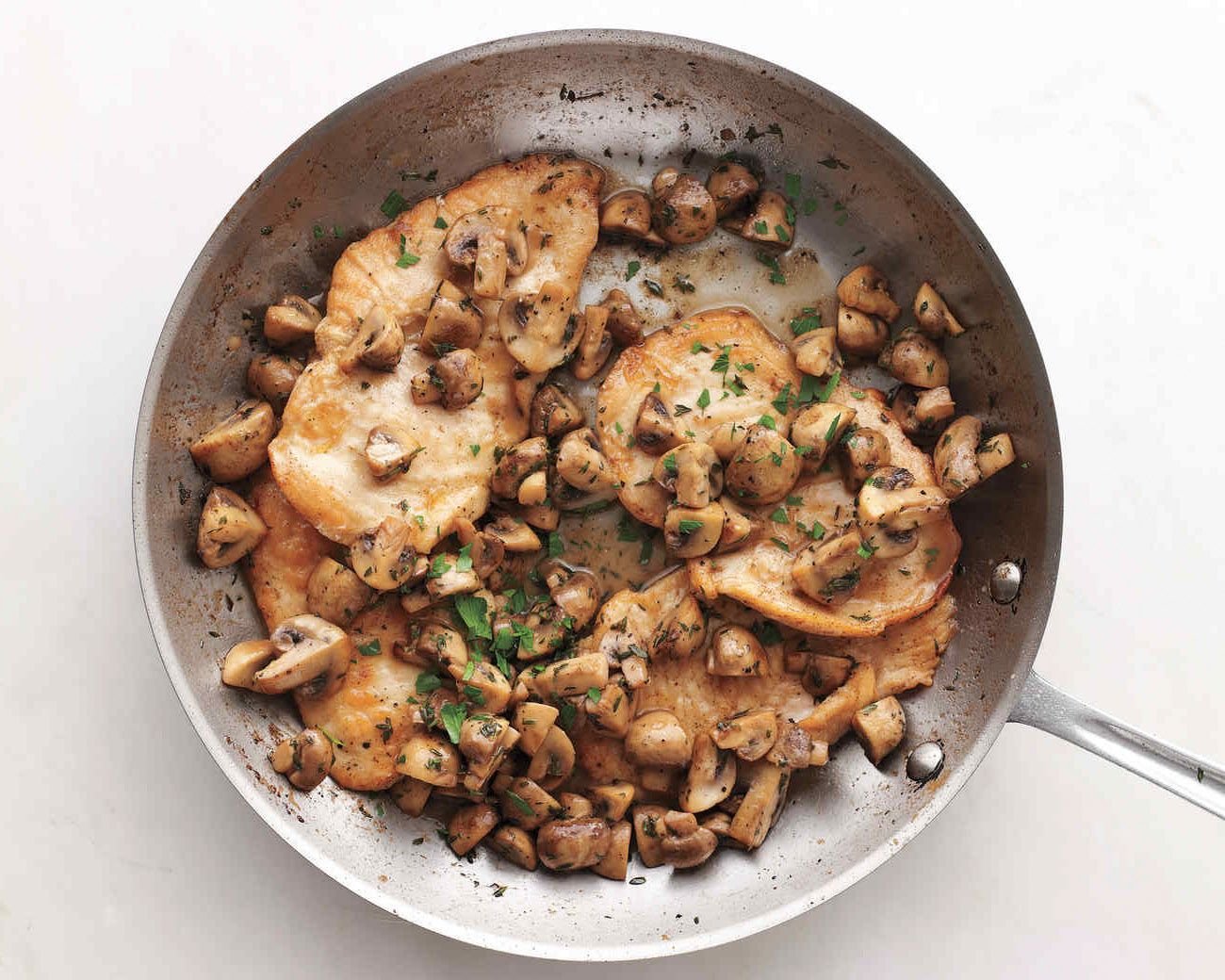 Фрикадельки с грибами в сливочном соусе на сковороде
