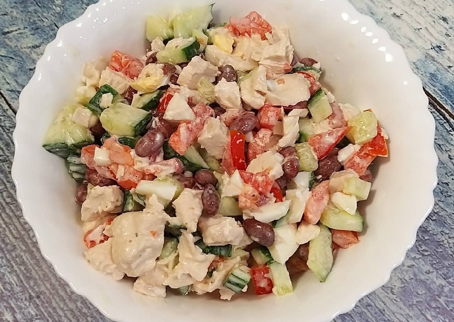 Салат с куриной грудкой и фасолью и помидорами