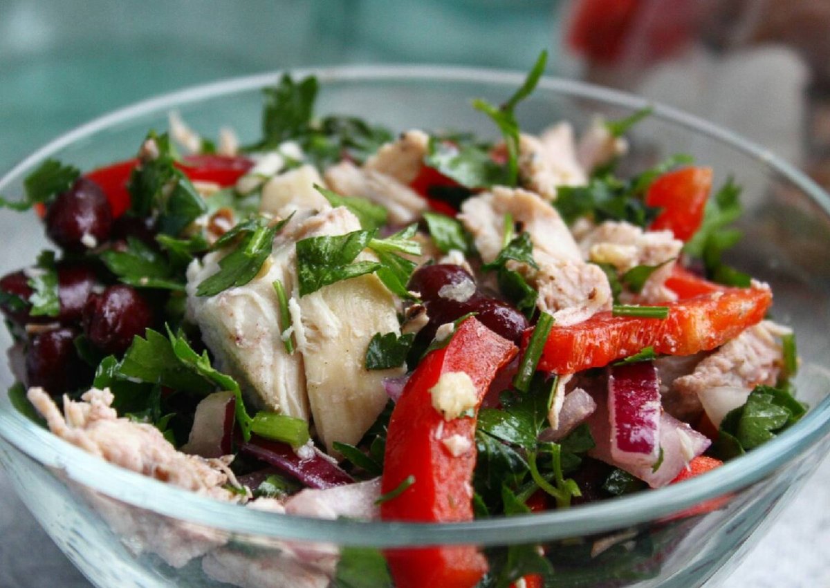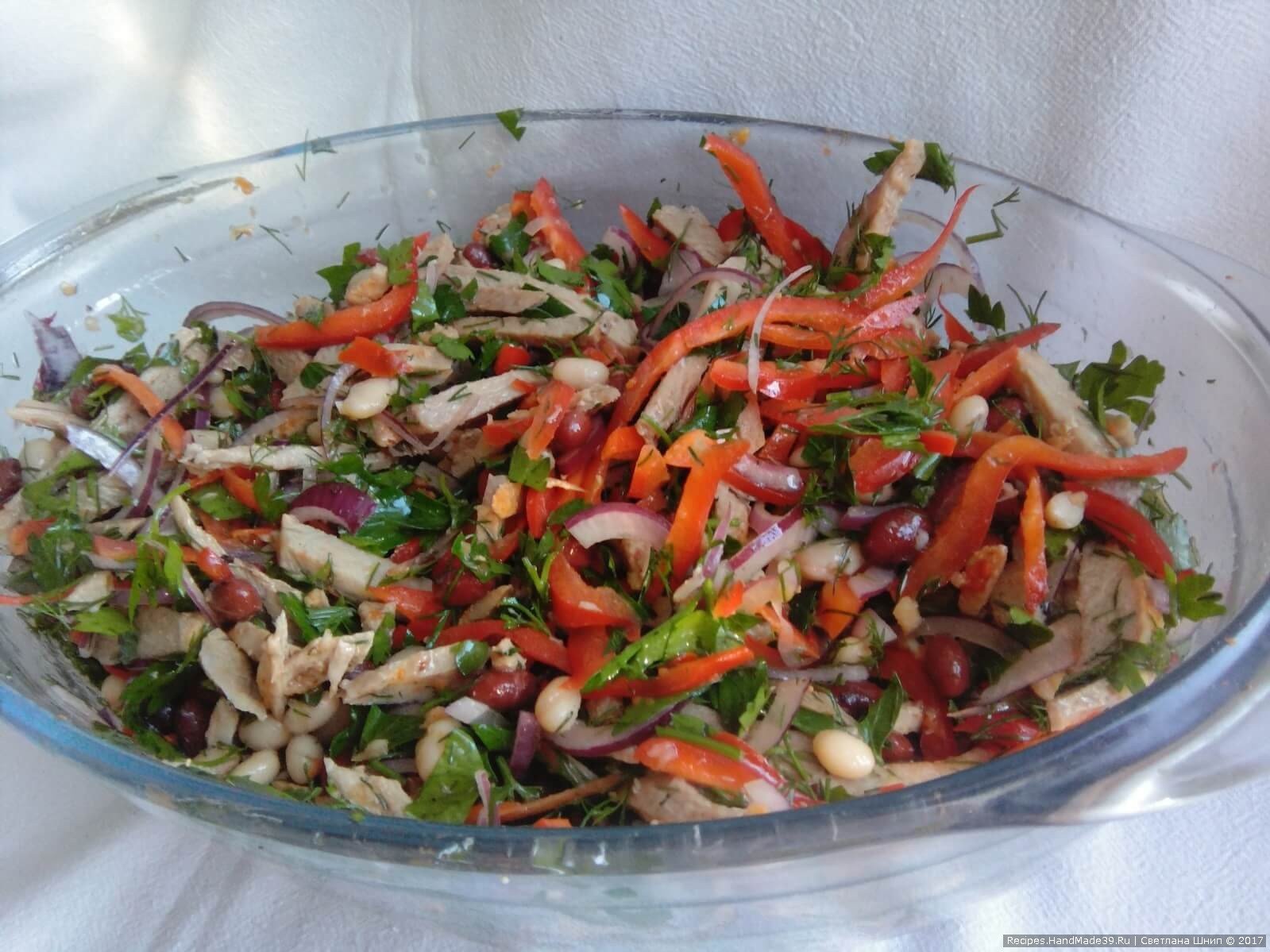 Салат с копчёной грудкой и фасолью