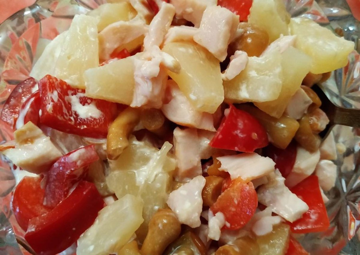 Салат с ананасом и курицей и перец болгарский