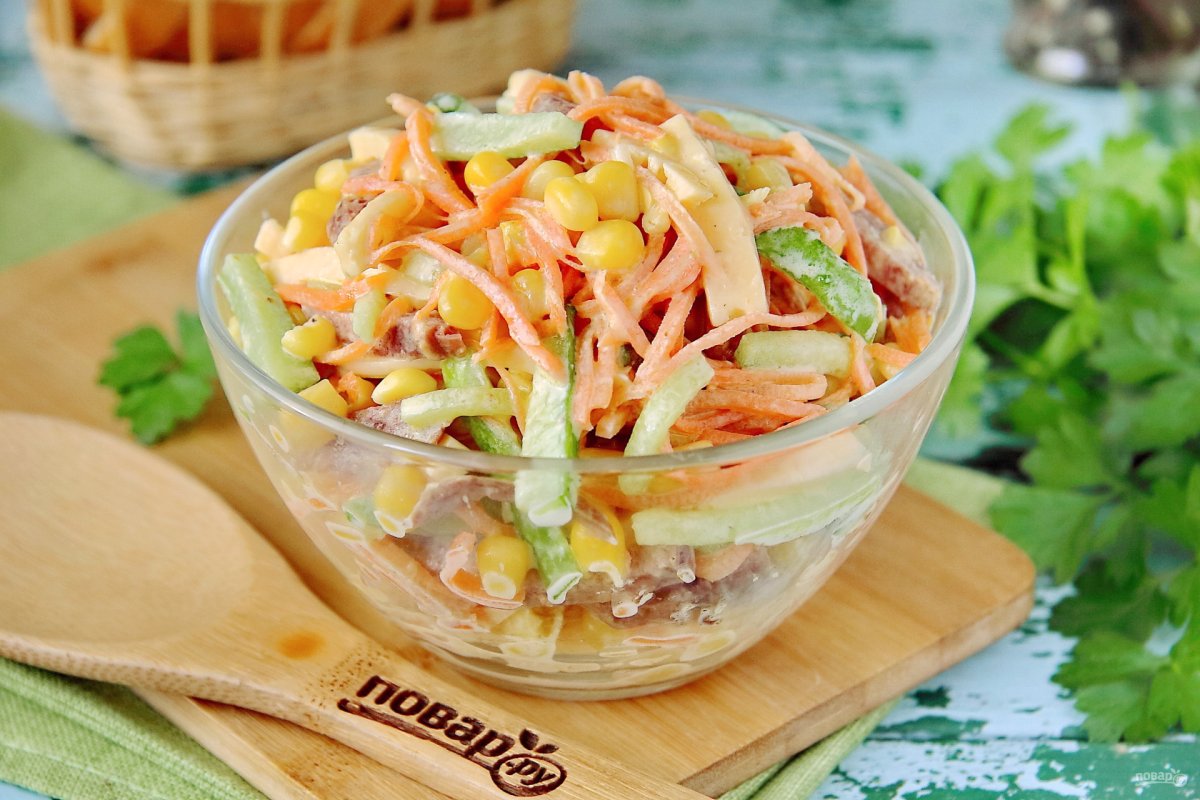 Салат из корейской моркови и кукурузы