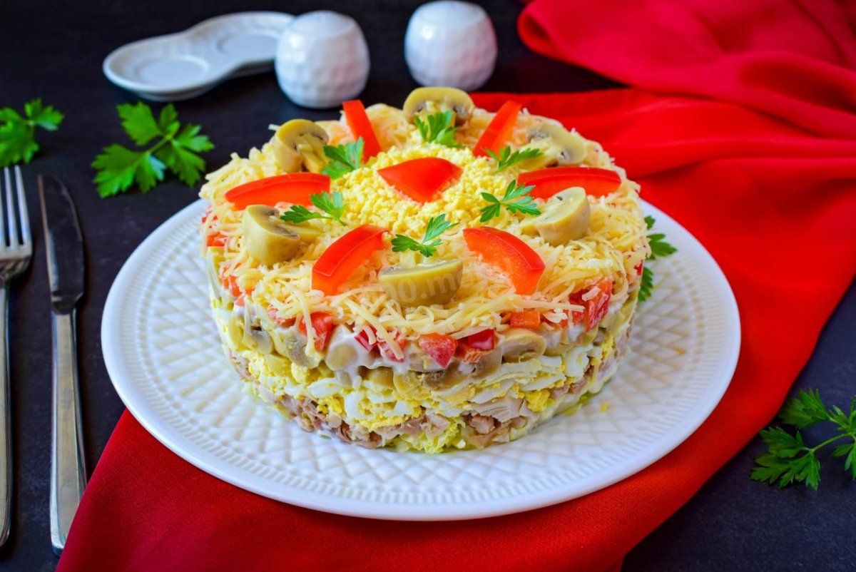 Салат мясной с грибами