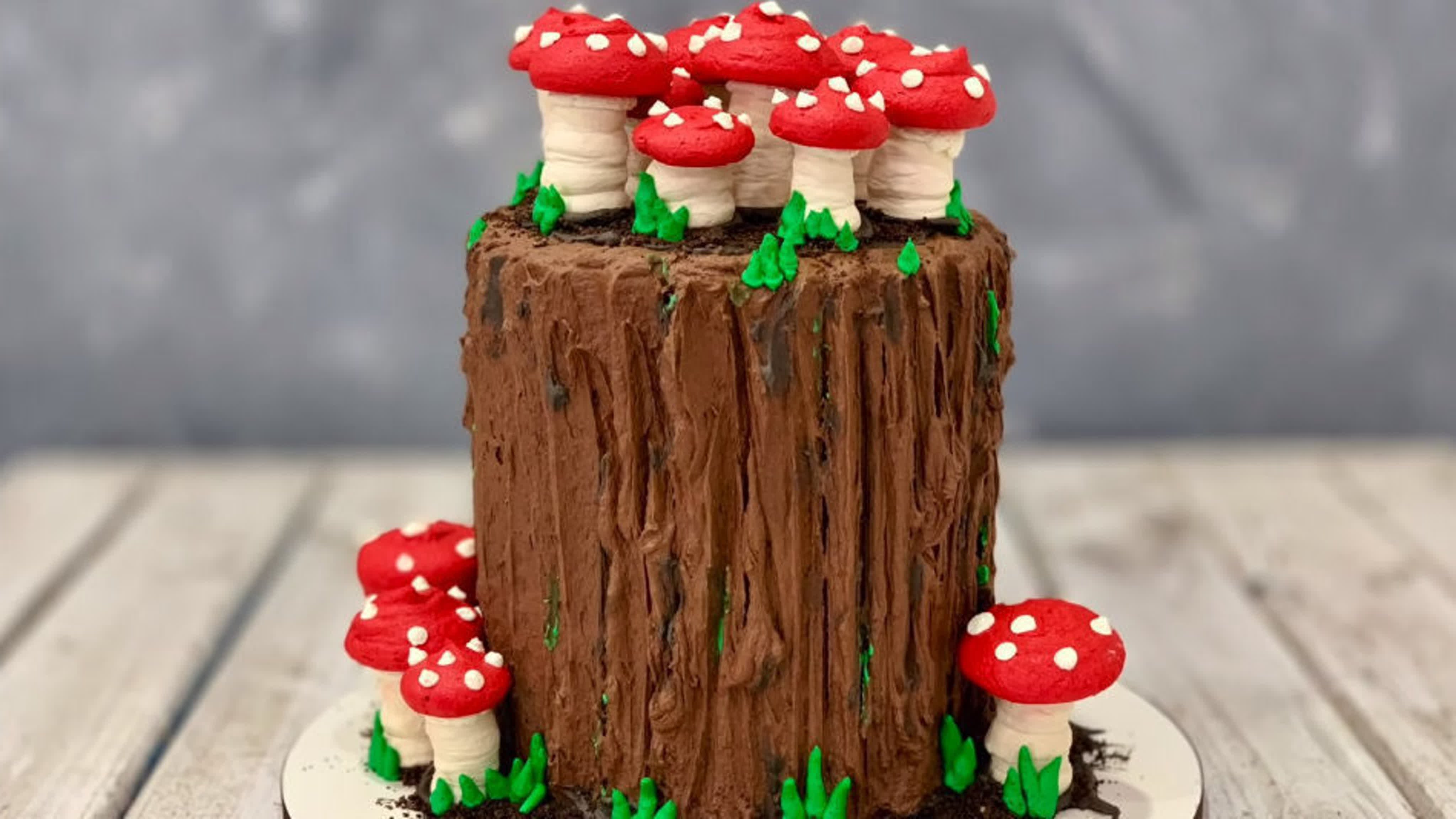 Торт пенек с мухоморами