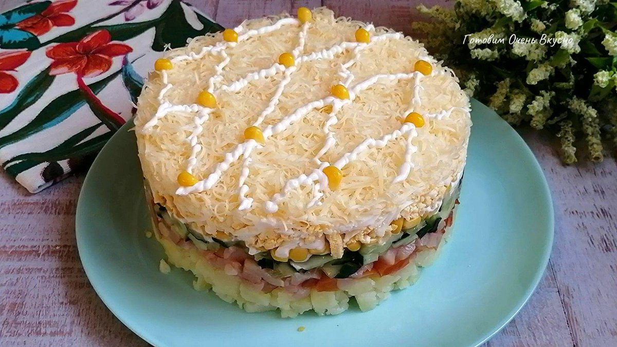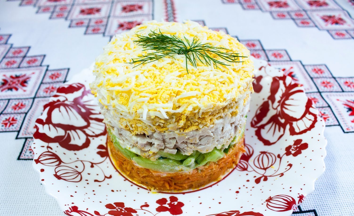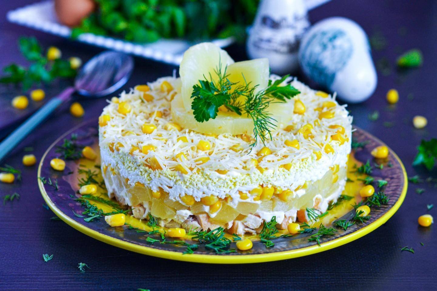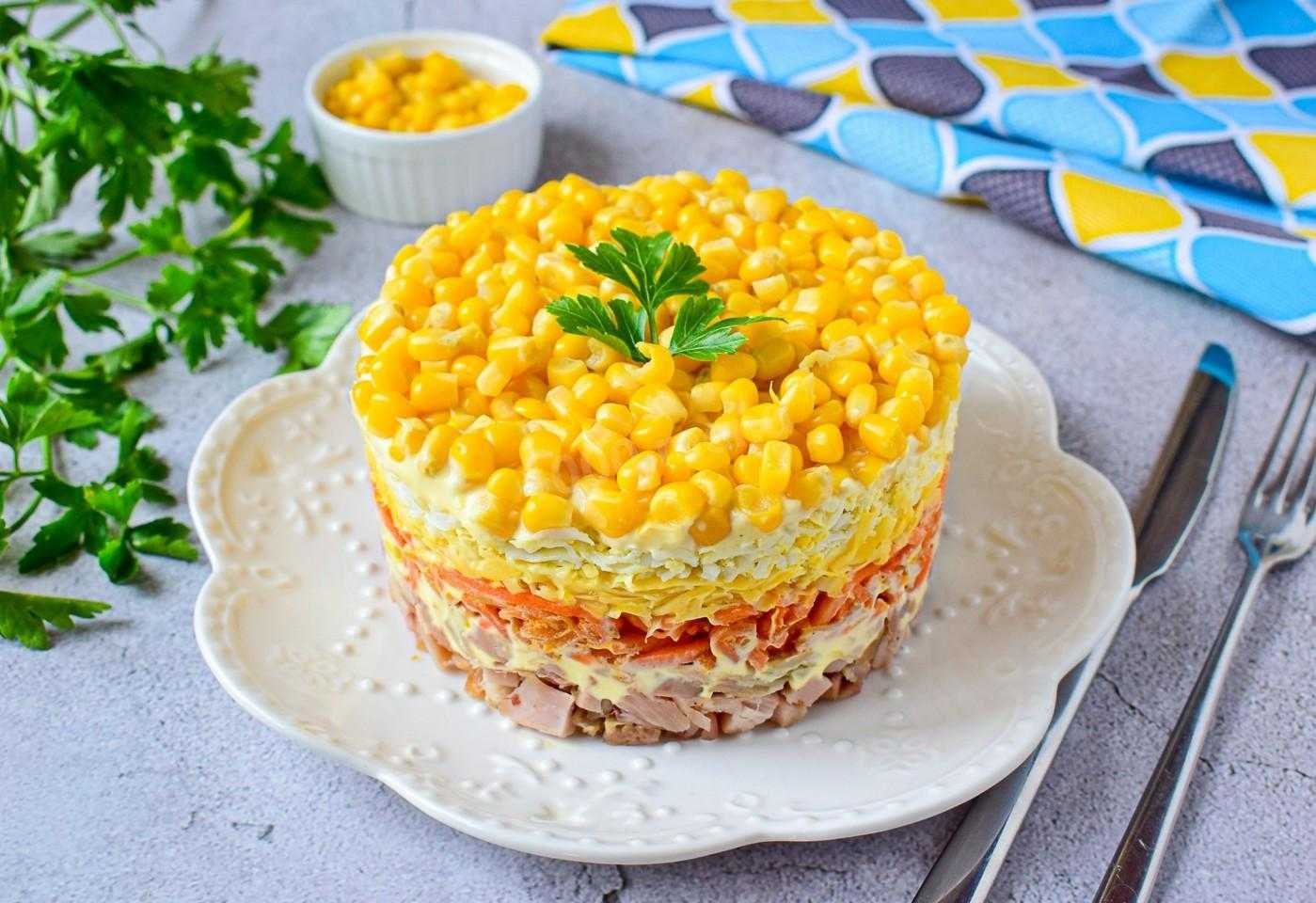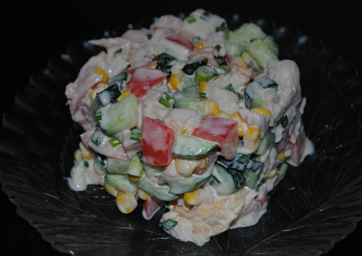 Салат с копчёной грудкой и корейской морковью и кукурузой