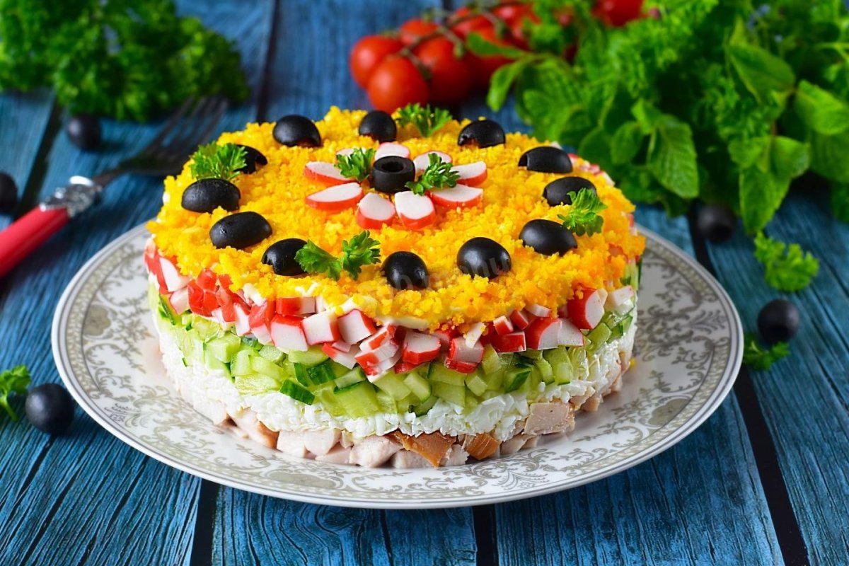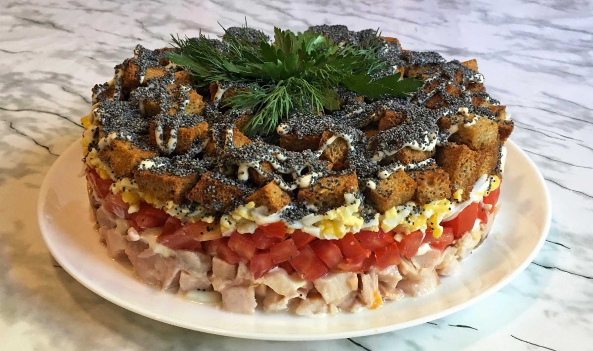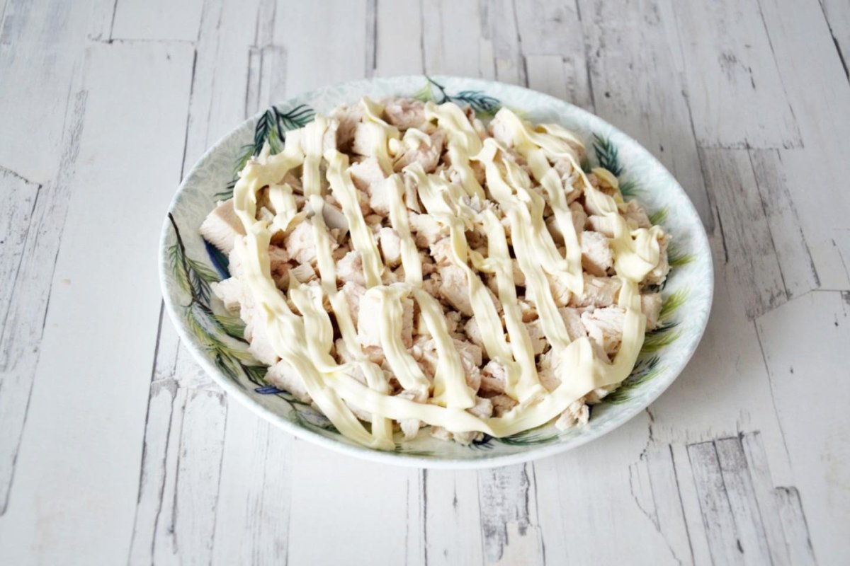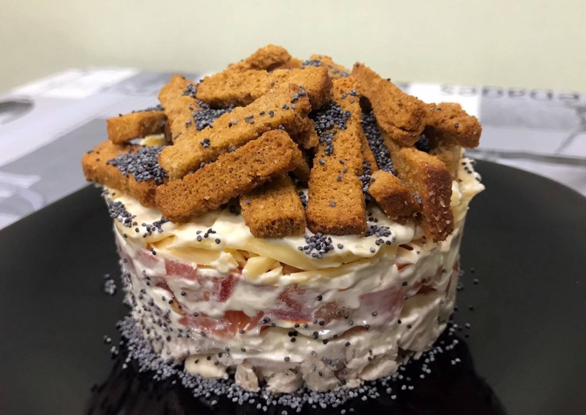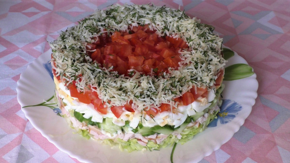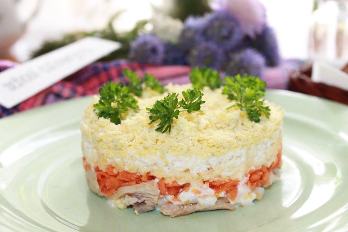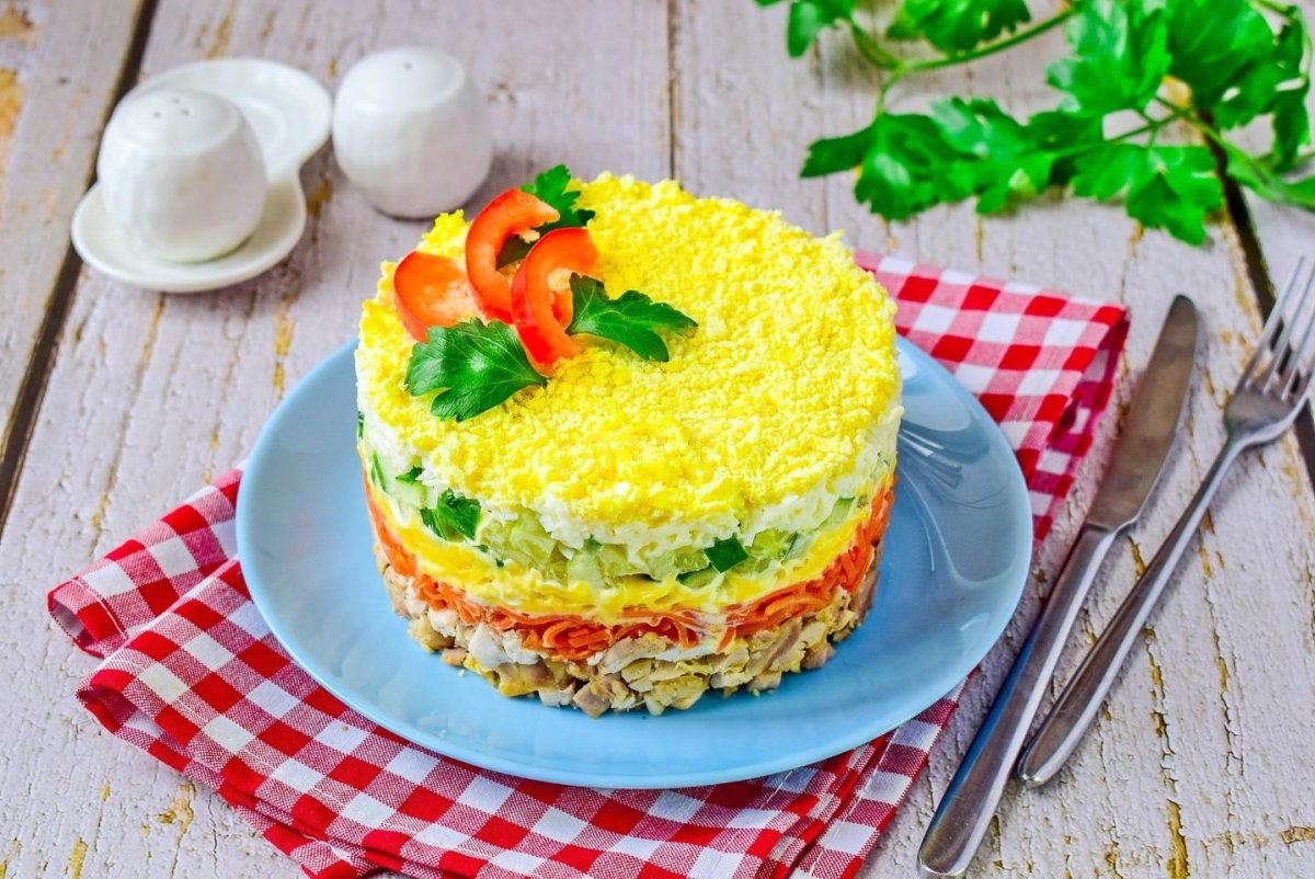 Салат с копчёной грудкой и корейской морковью и кукурузой