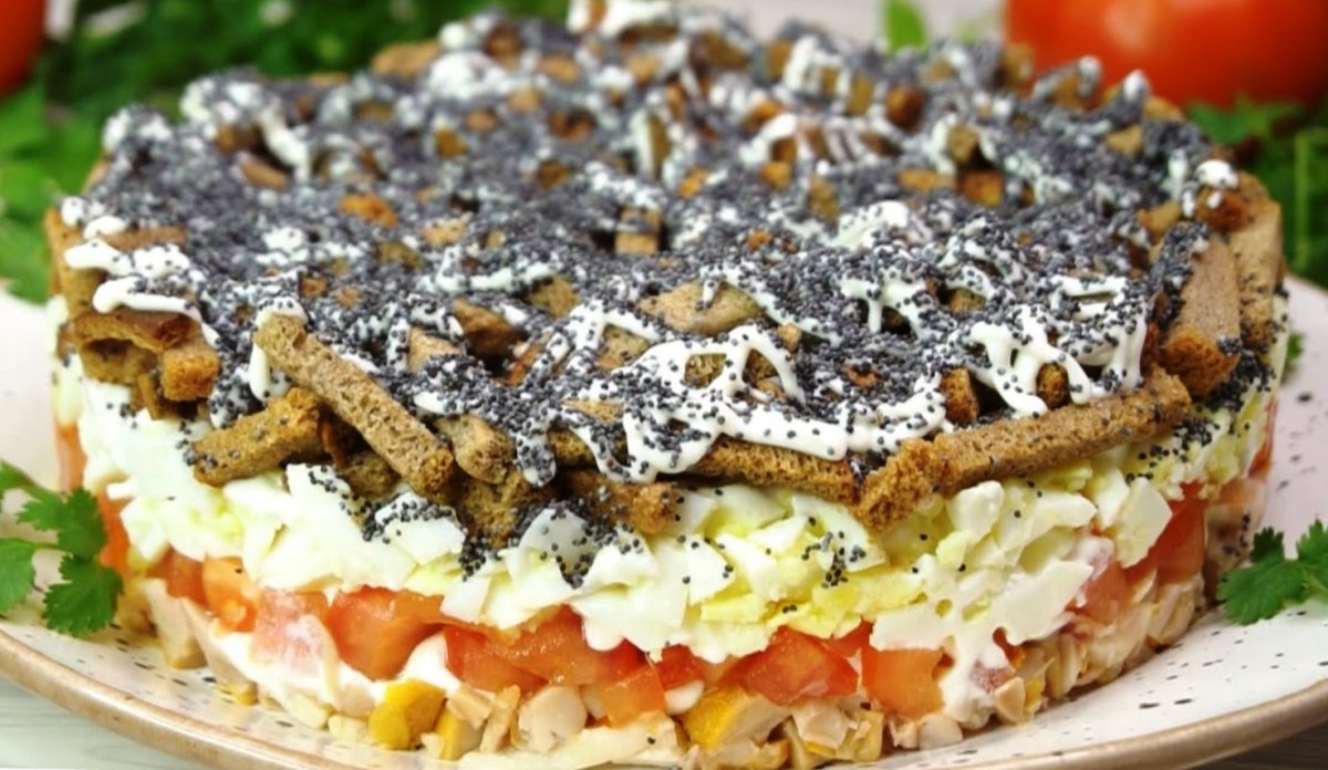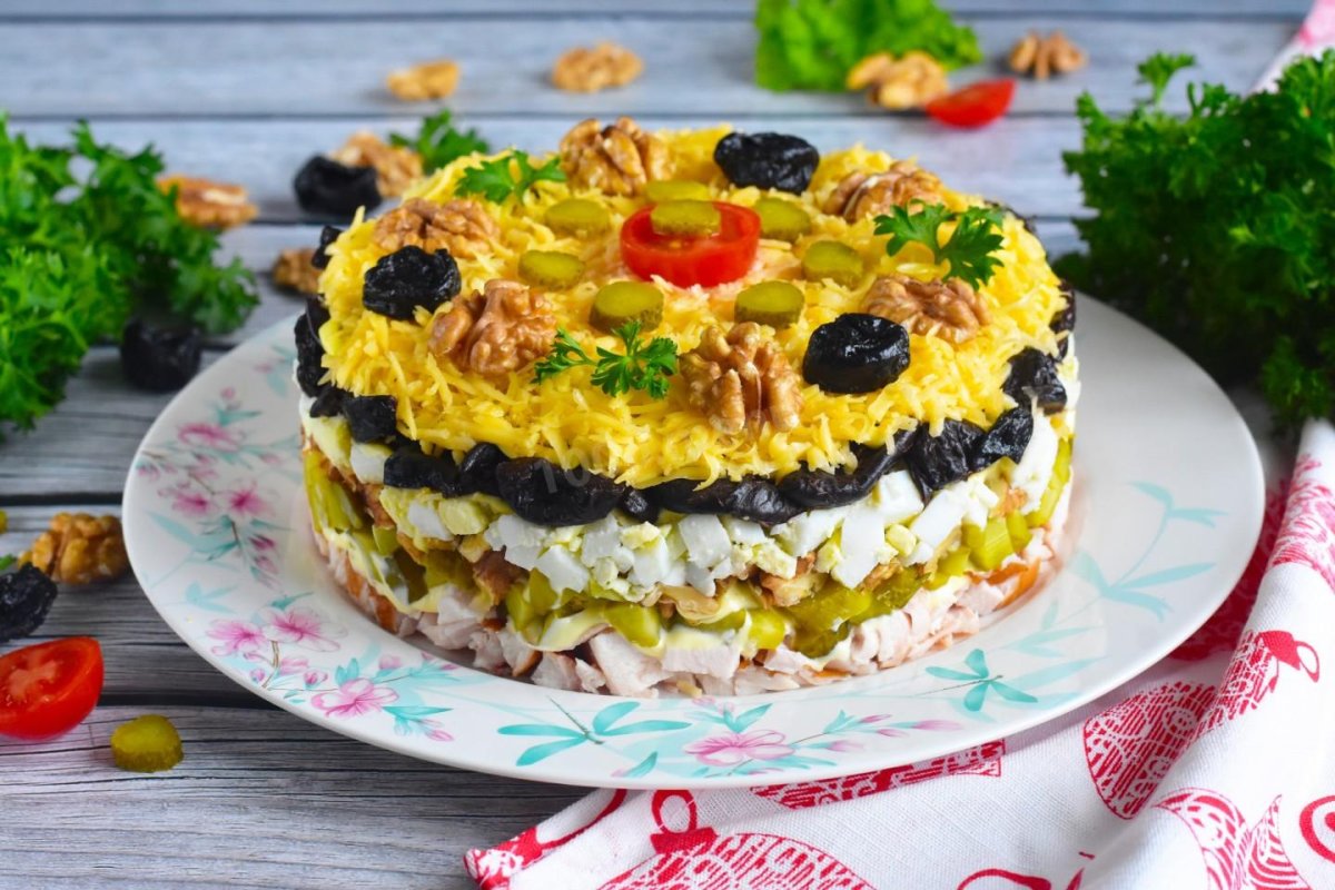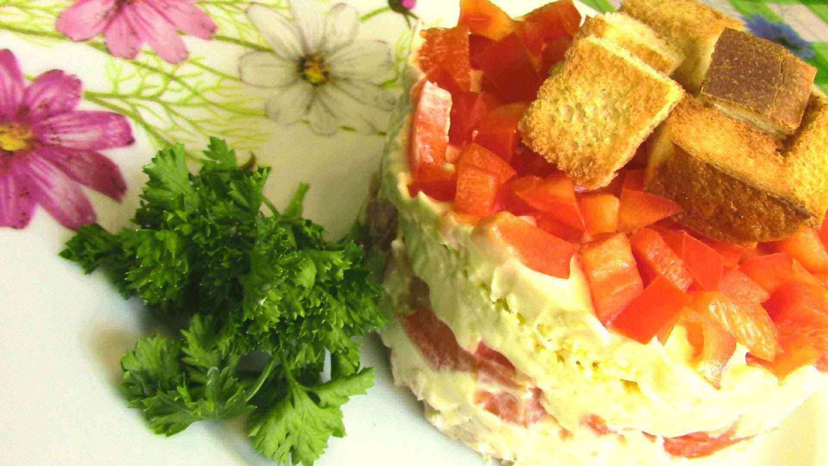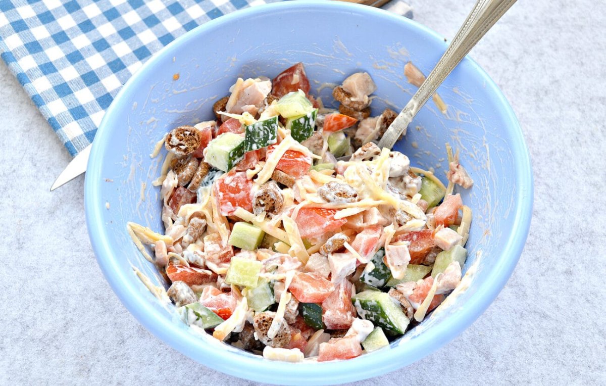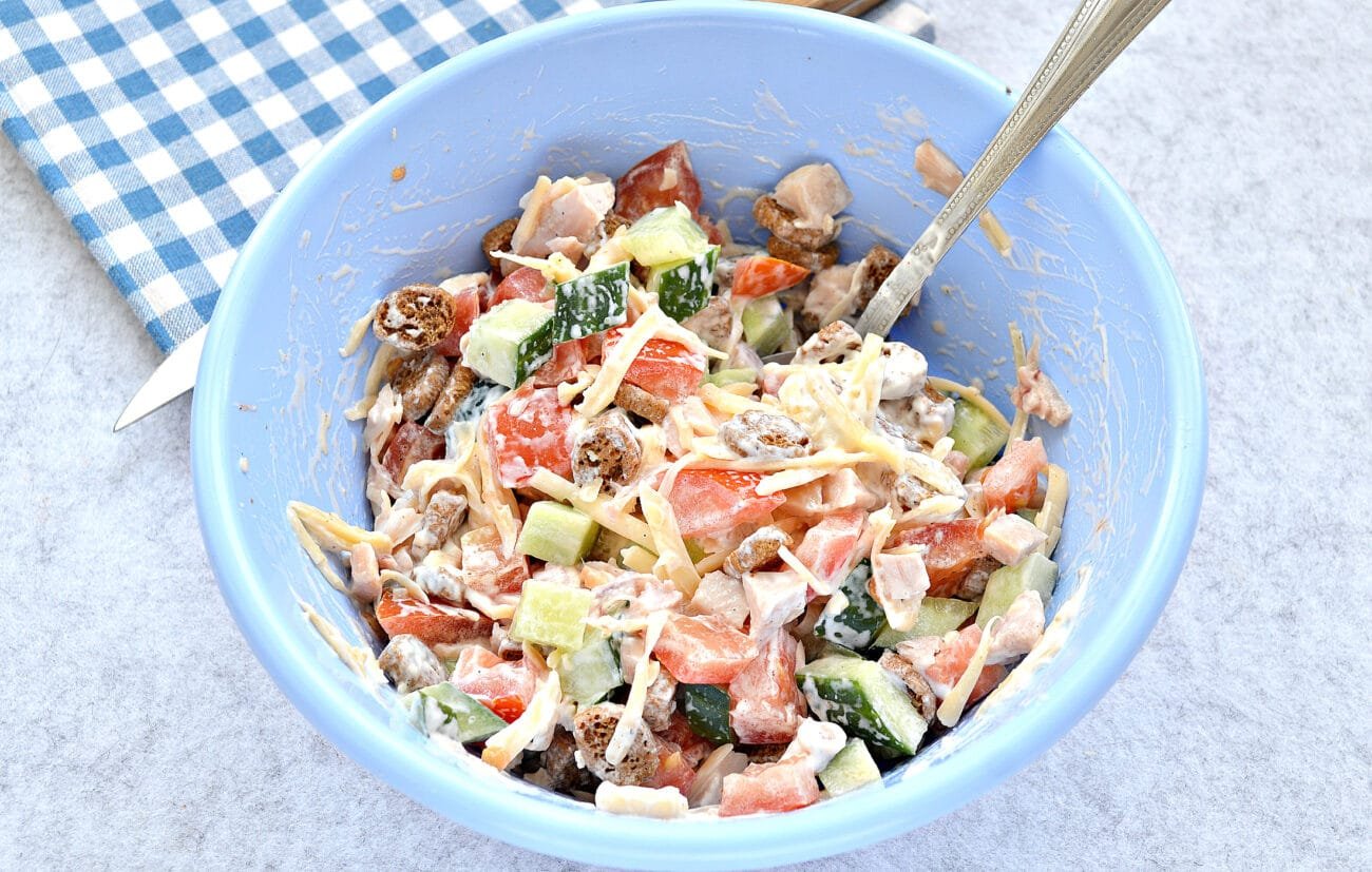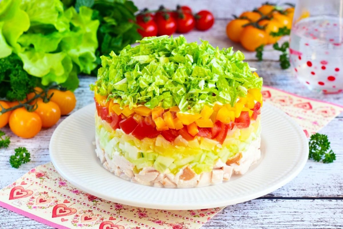 Салат с копчёной грудкой и корейской морковью и кукурузой