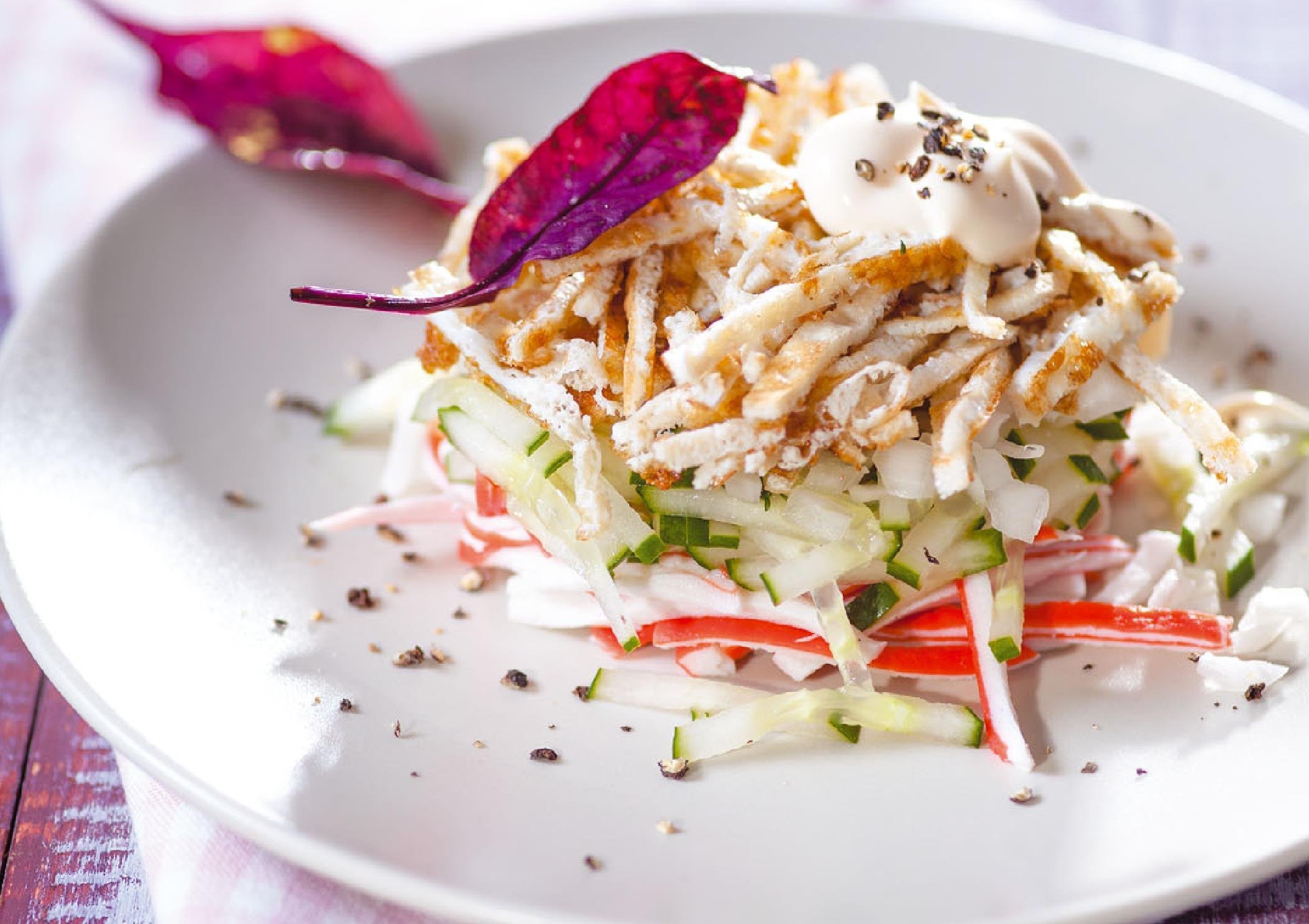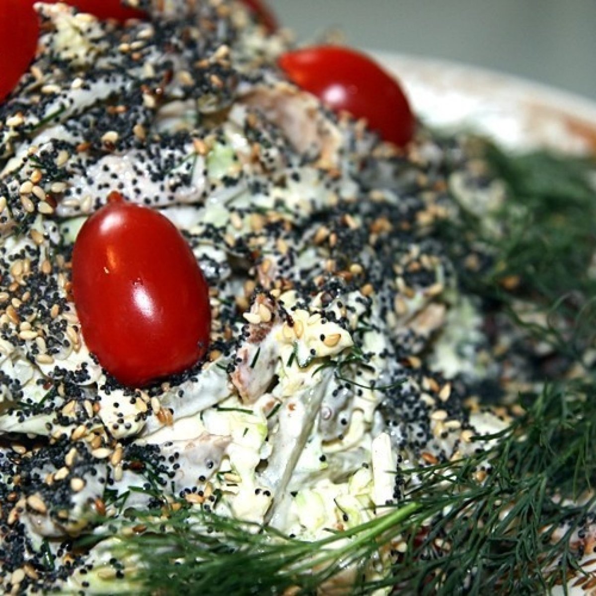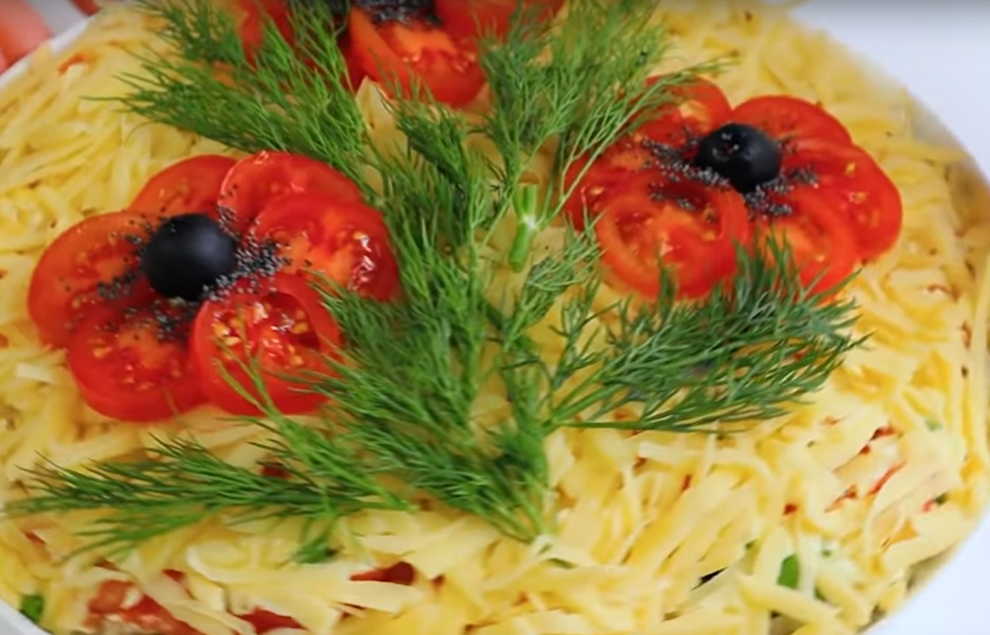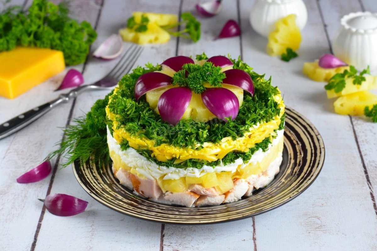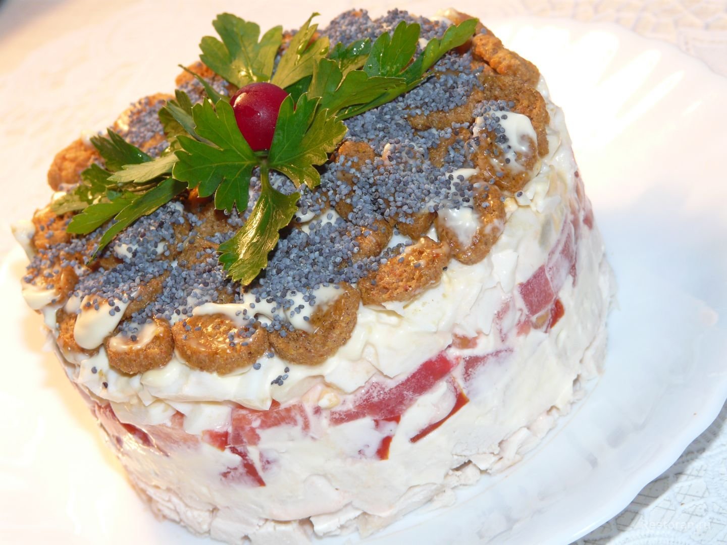 Салат с копчёной грудкой и корейской морковью и кукурузой