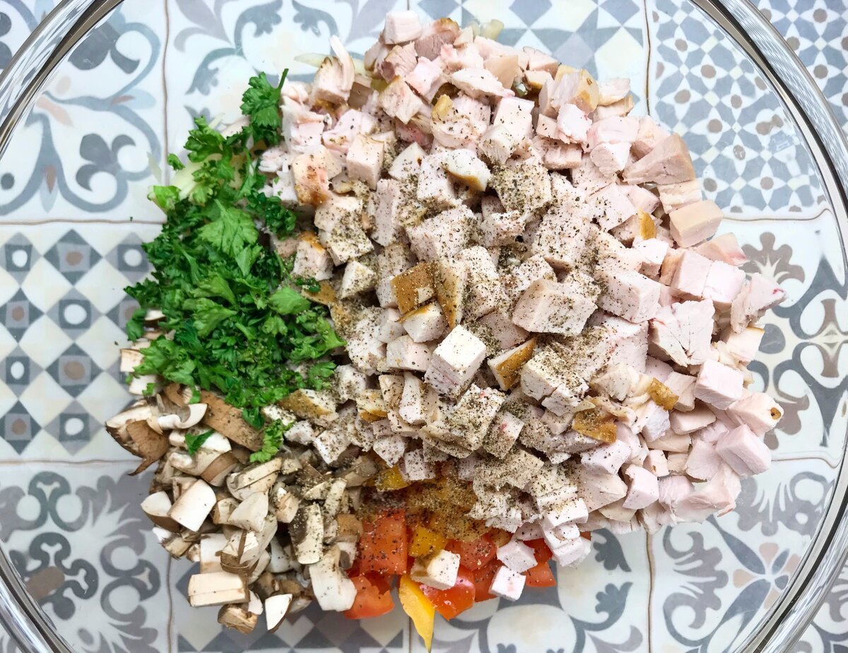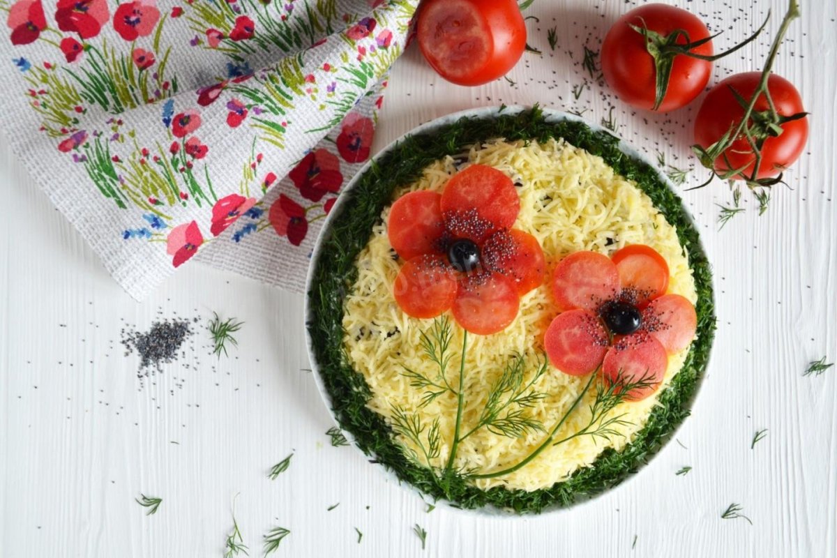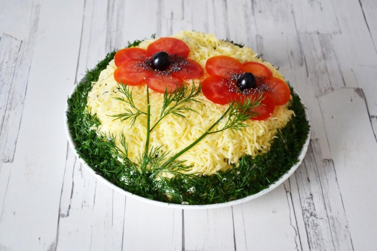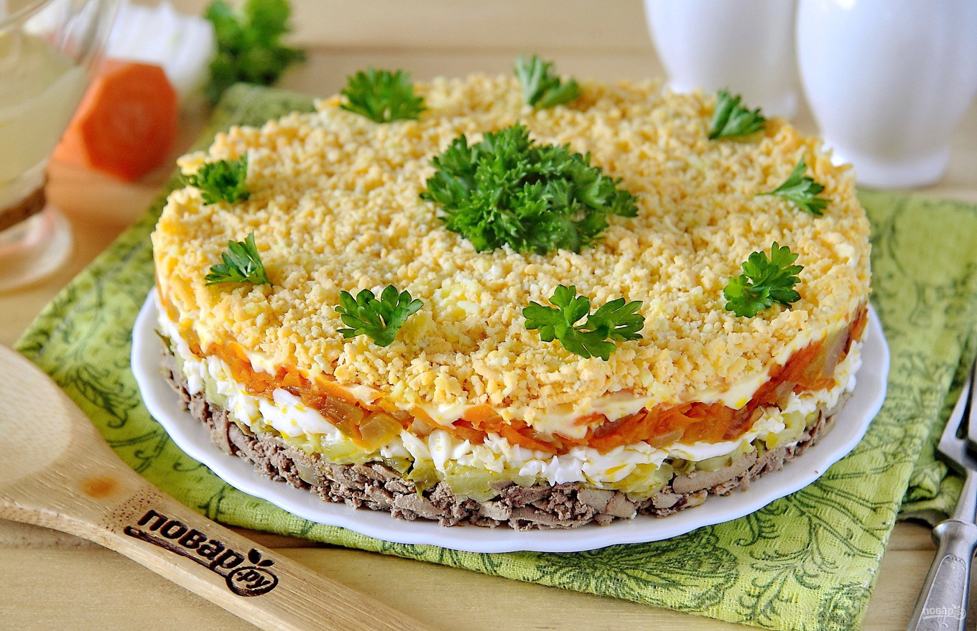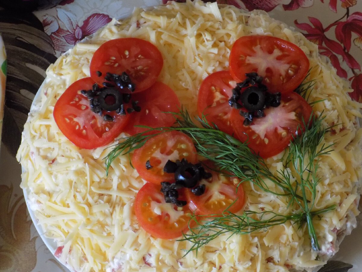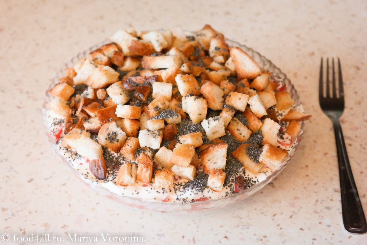 Салат с копчёной грудкой и корейской морковью и кукурузой