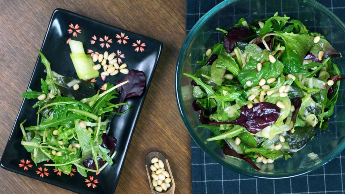 Салат с салатом микс и кедровыми орешками