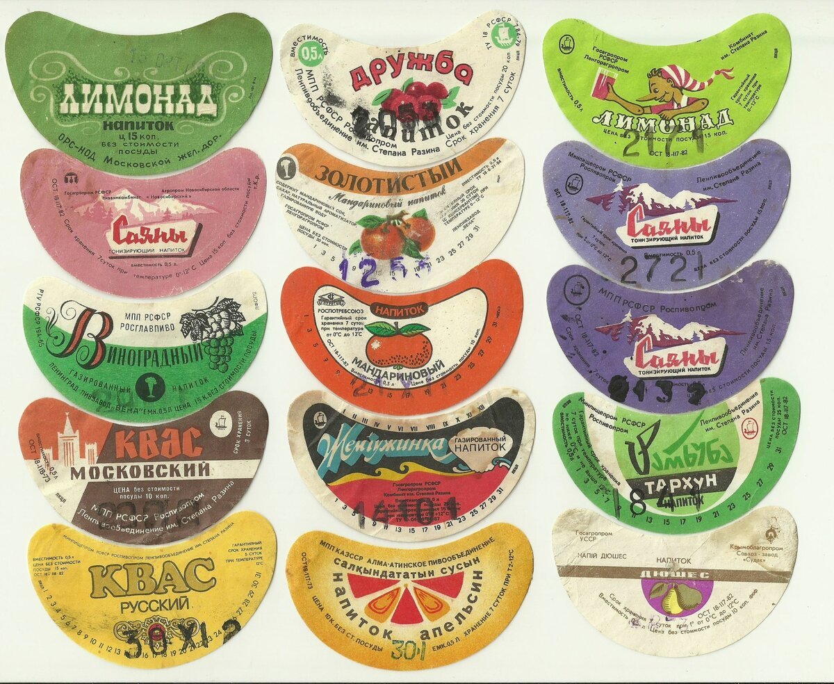 Этикетки советских лимонадов Тархун