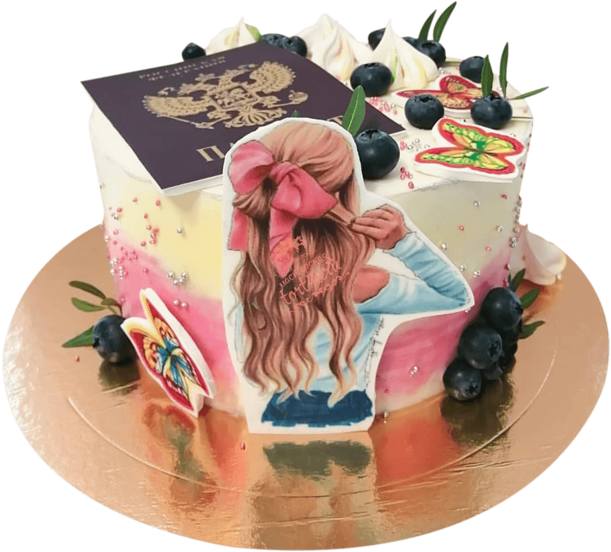 Торт с девушкой и бабочками