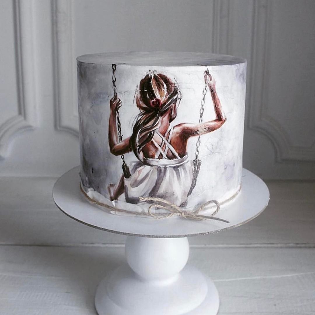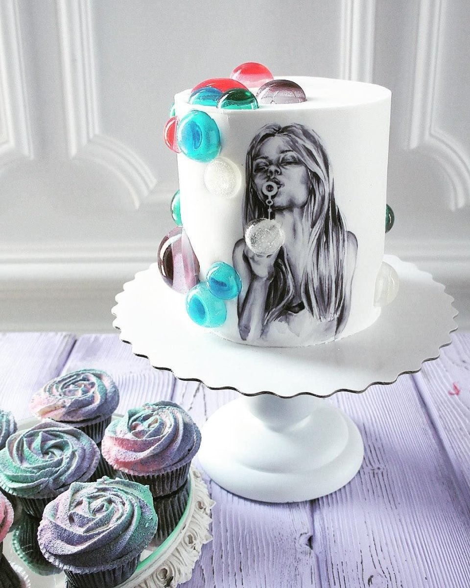 Торт с нарисованной девушкой
