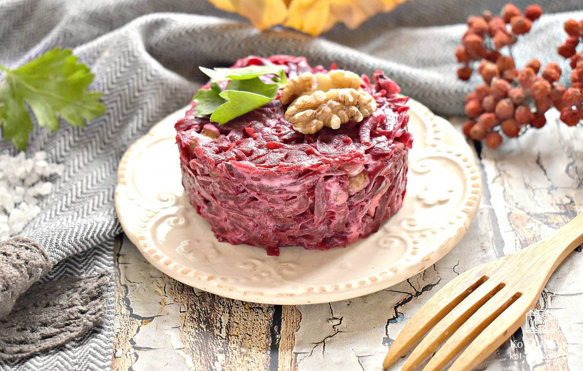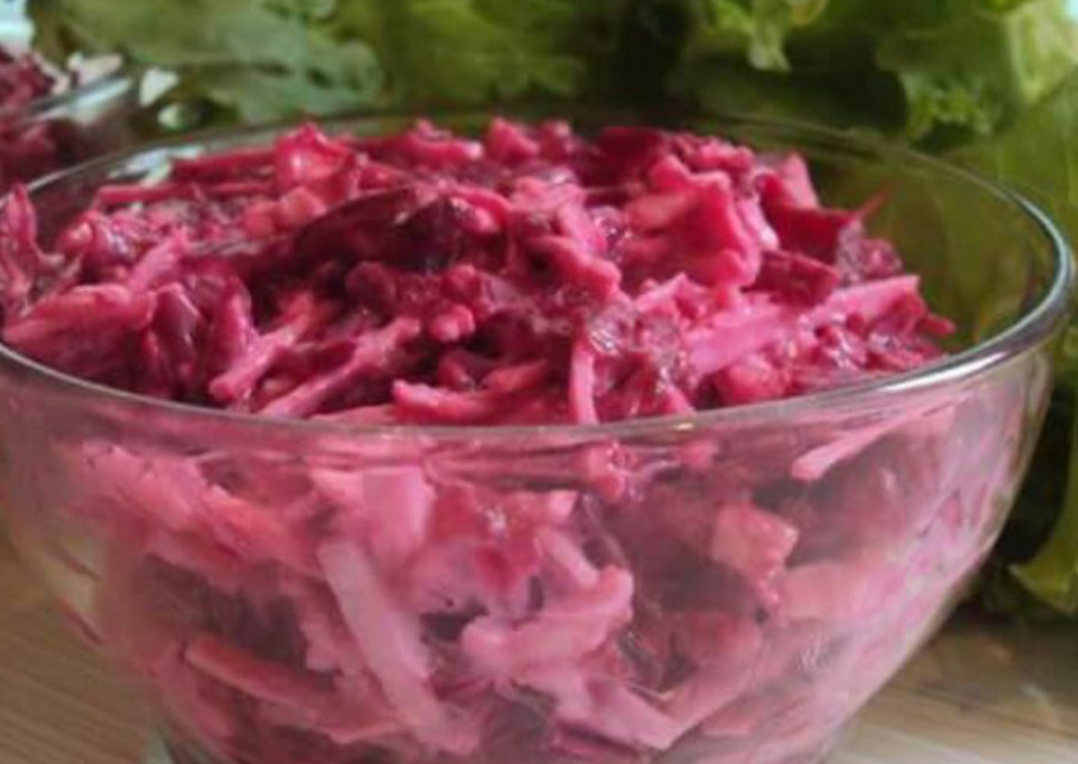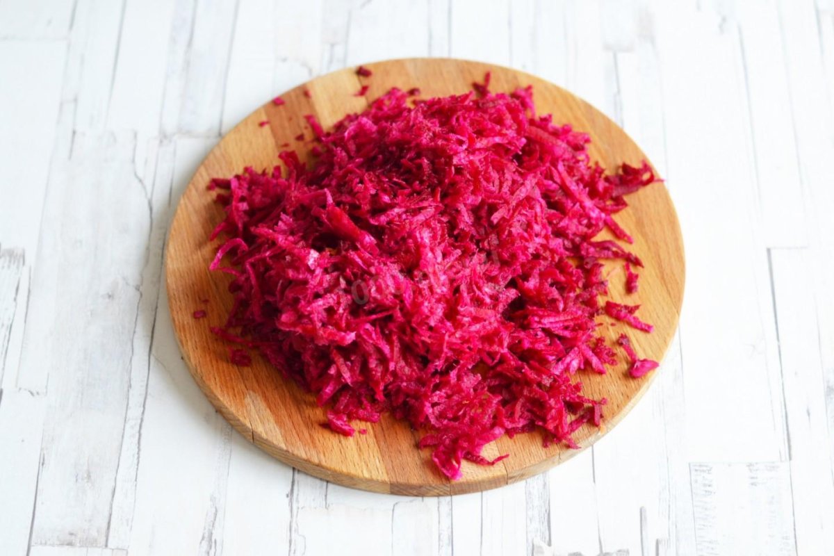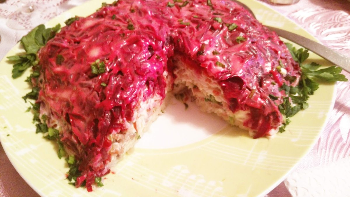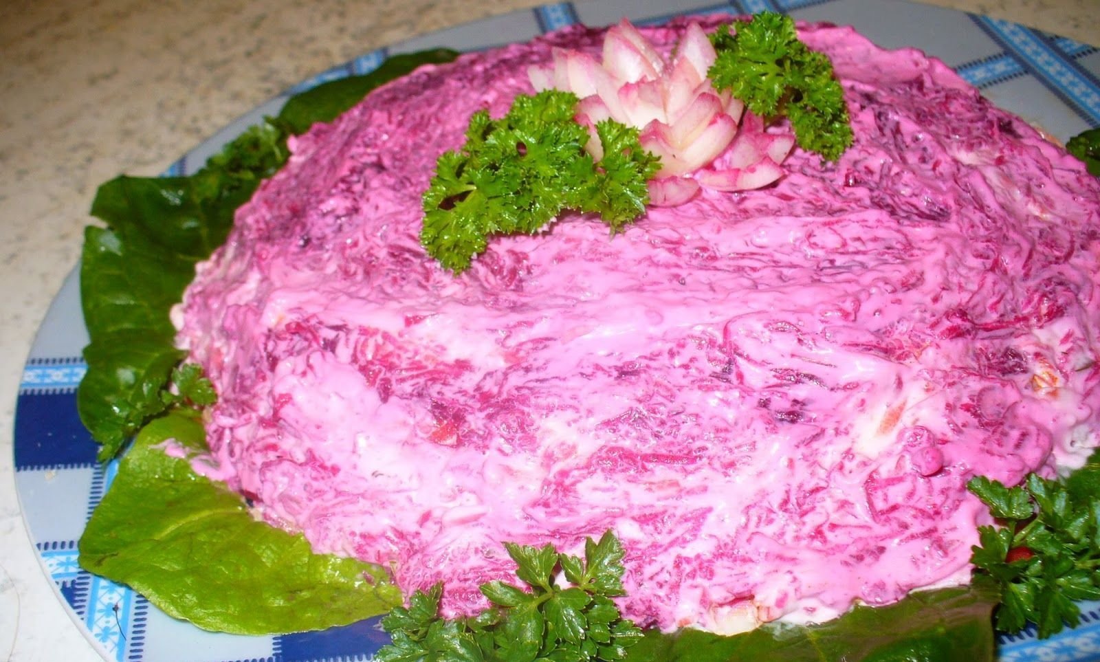 Салат из свёклы с крабовыми палочками "розовый Фламинго"