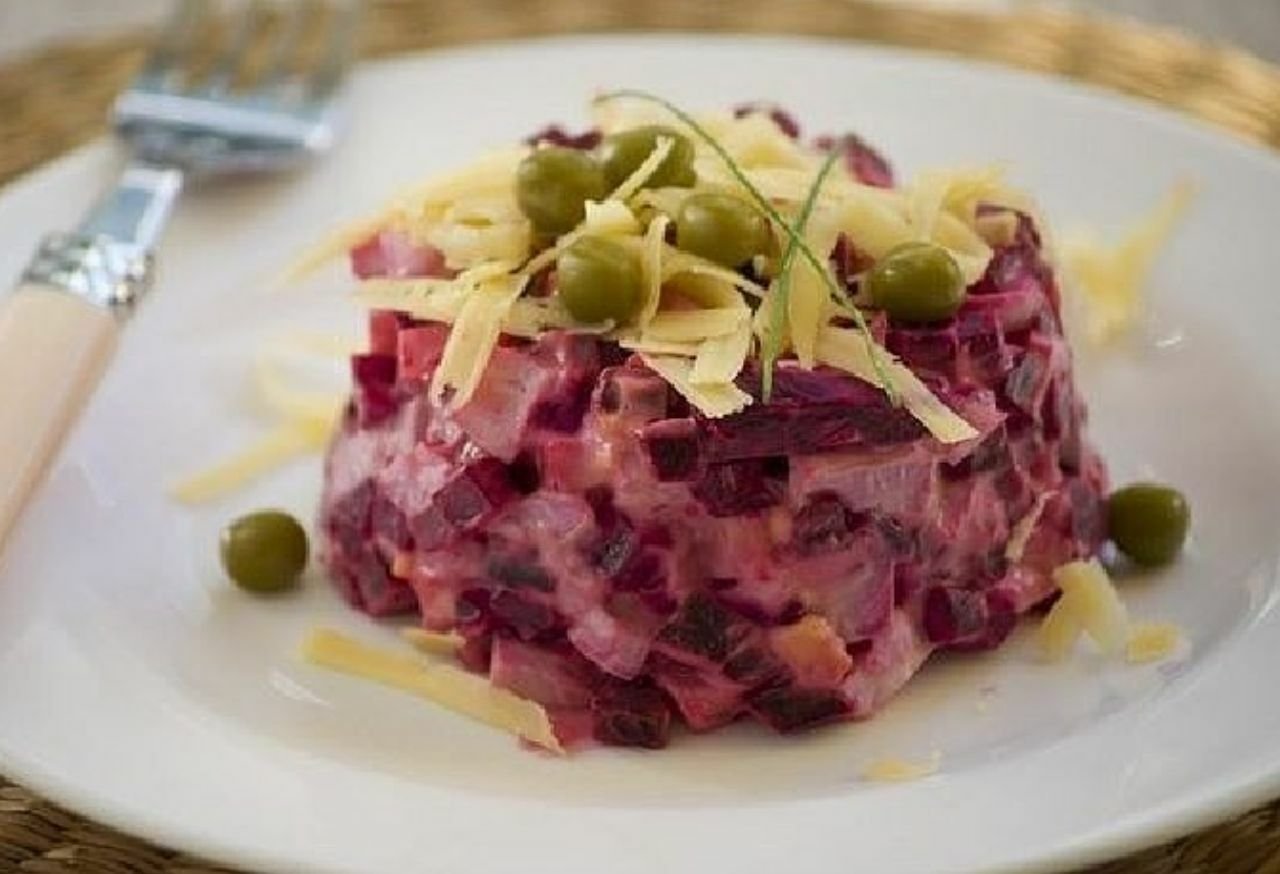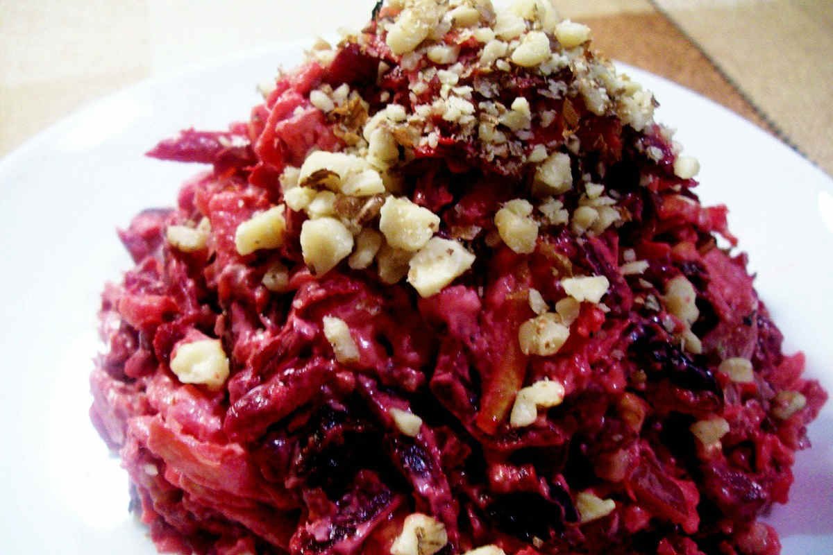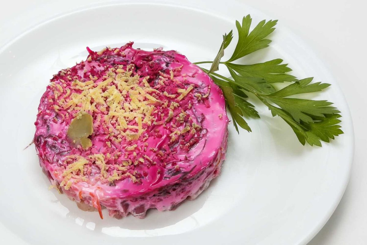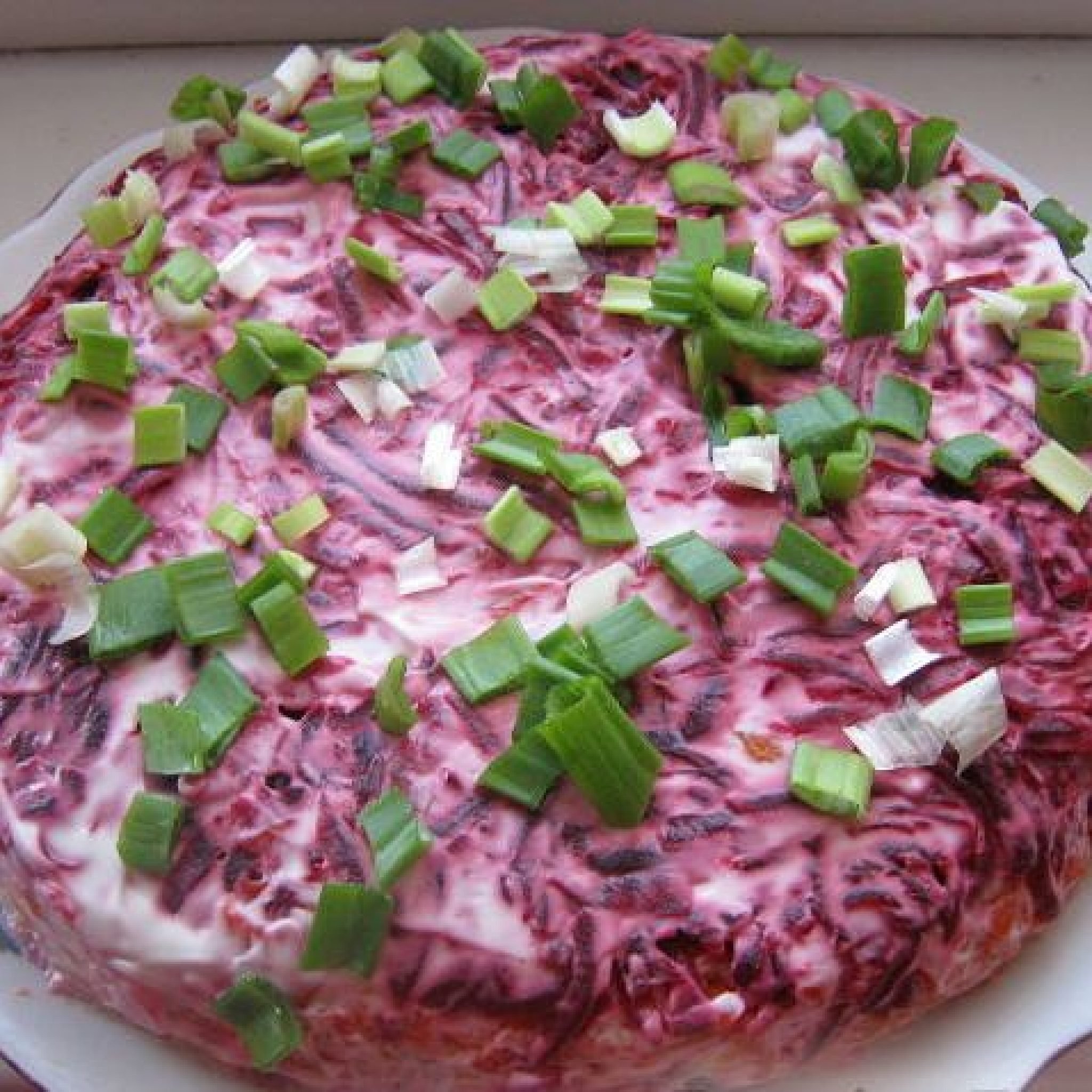 Салат из свёклы с крабовыми палочками "розовый Фламинго"
