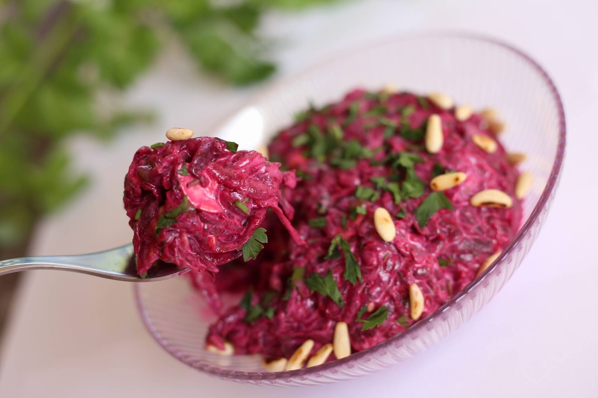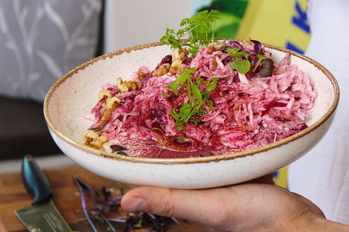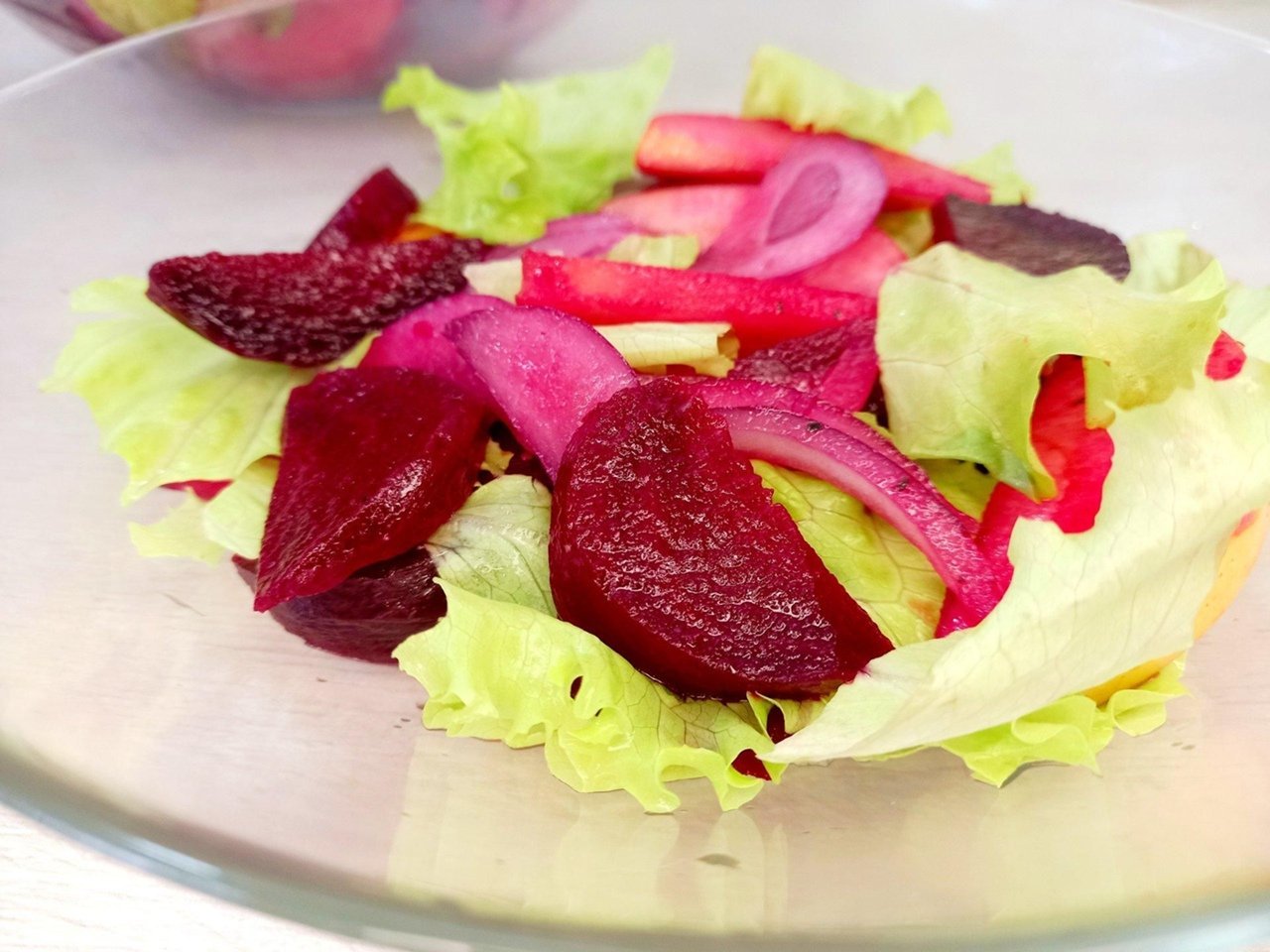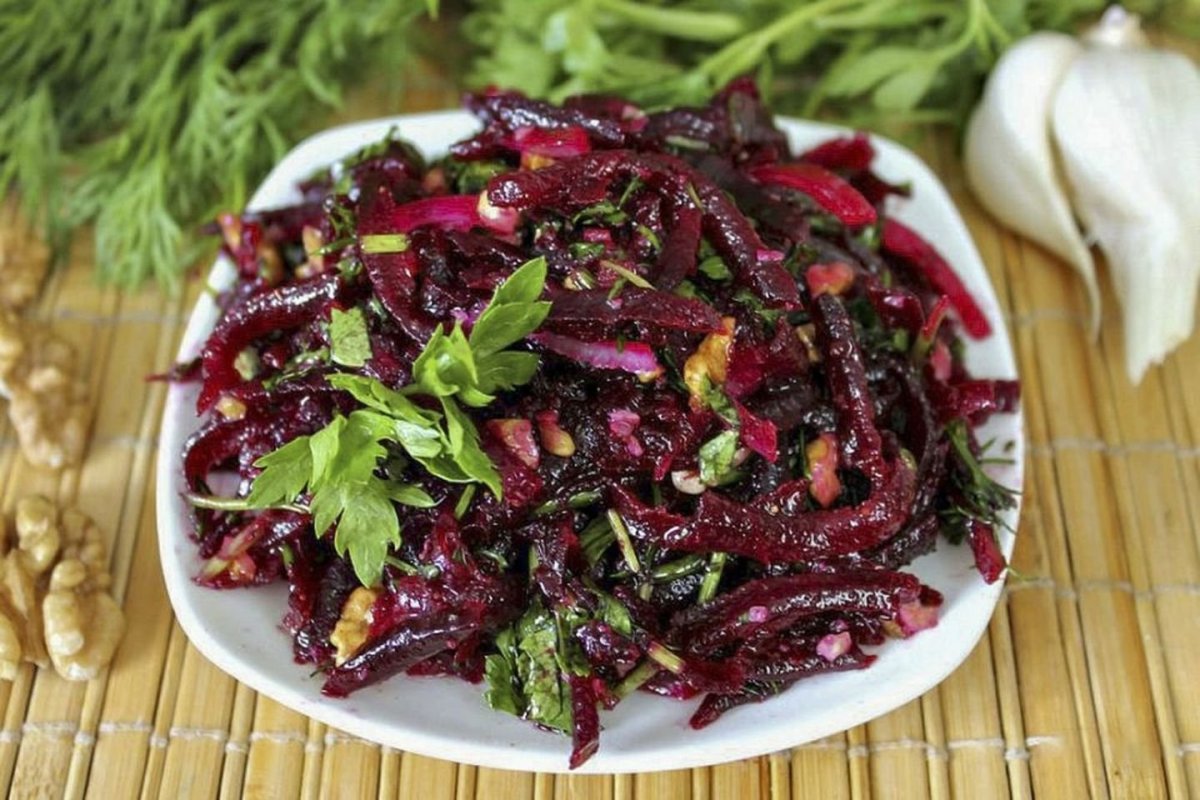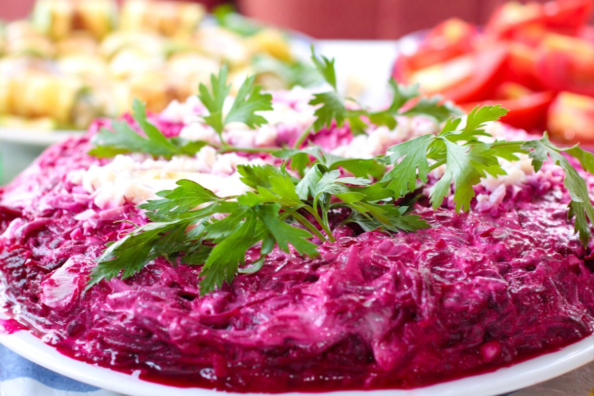 Салат из свёклы с крабовыми палочками "розовый Фламинго"