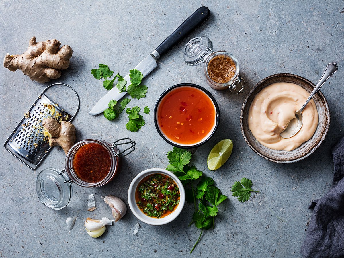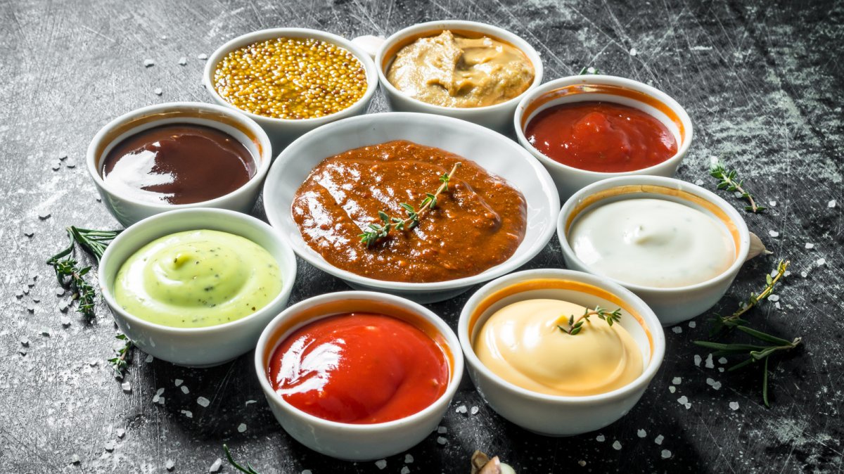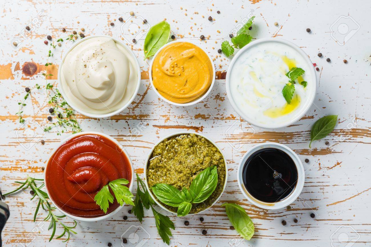 Соусы на столе вид сверху