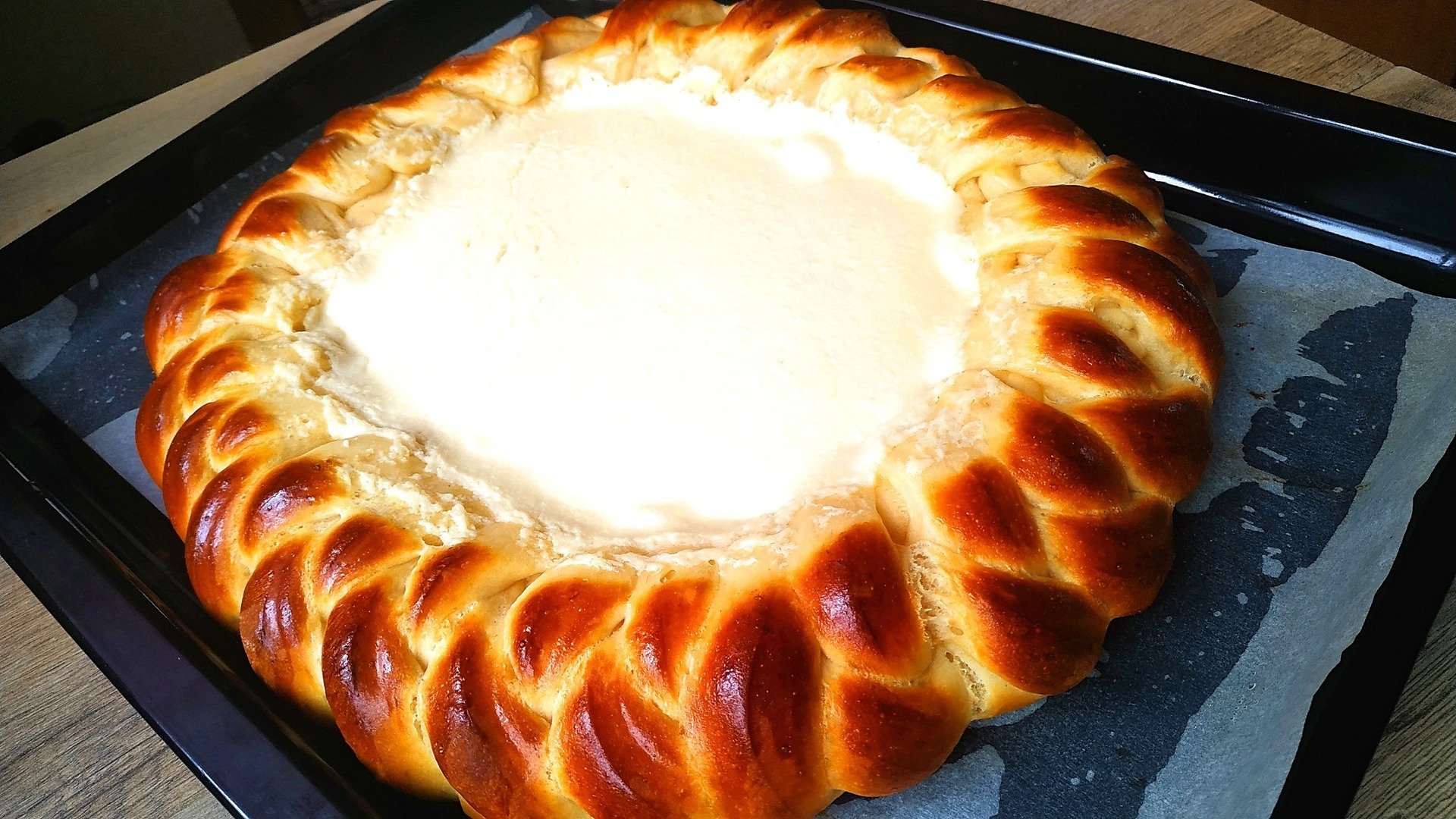 Красивый закрытый пирог из дрожжевого теста