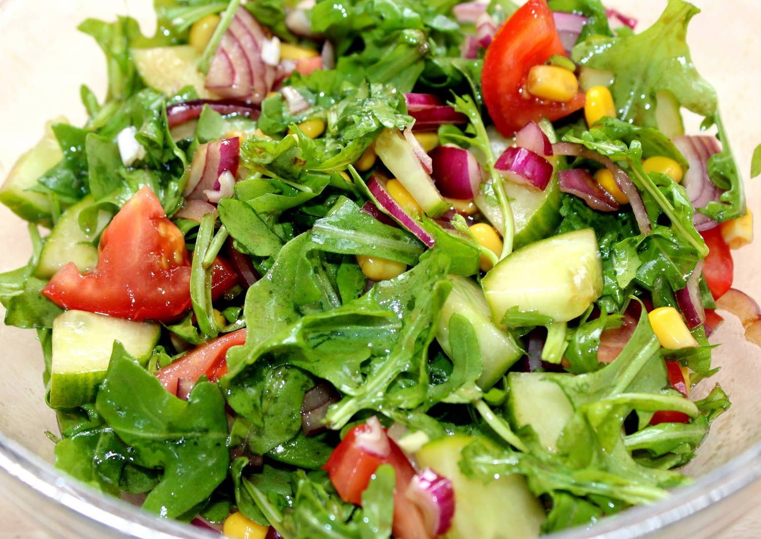 Салат руккола с помидорами и огурцами