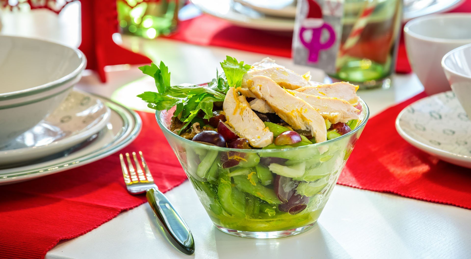 Салат с курицей сельдереем и виноградом