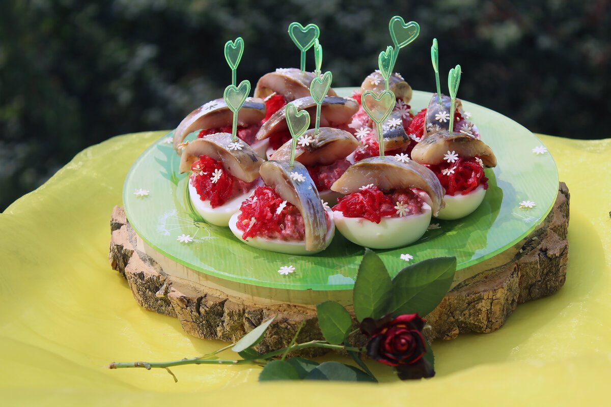 Яйца фаршированные свеклой и сельдью