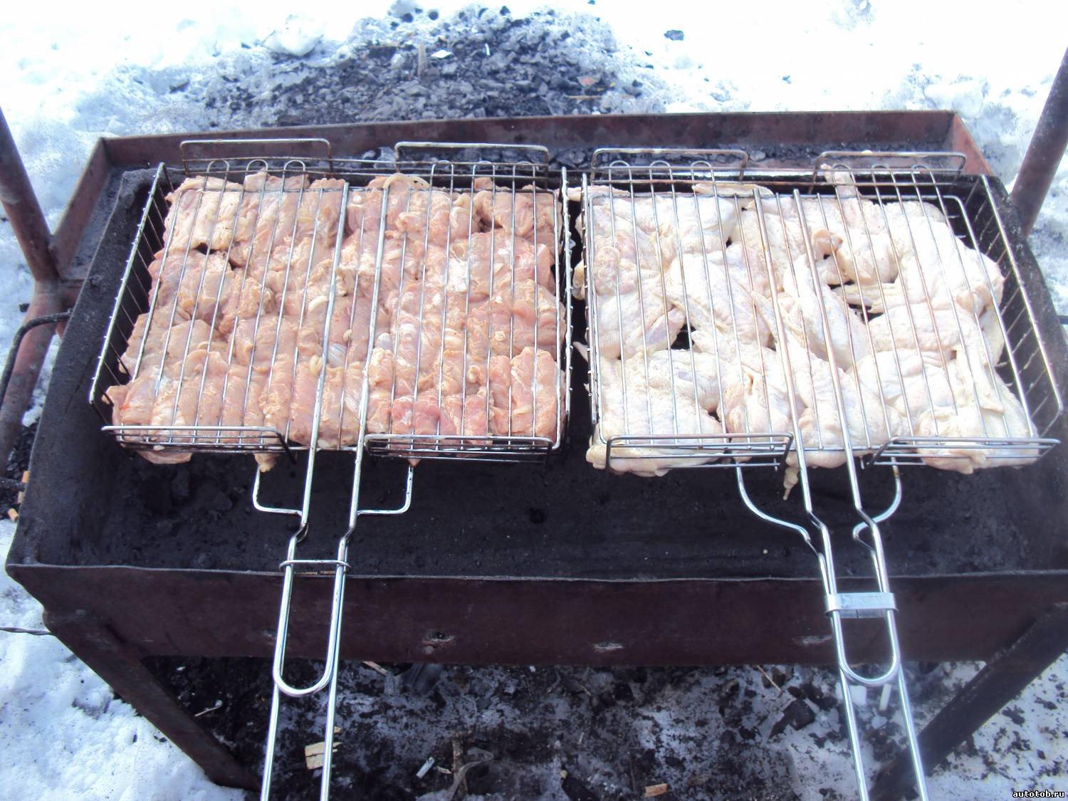 Мясо на мангале зимой