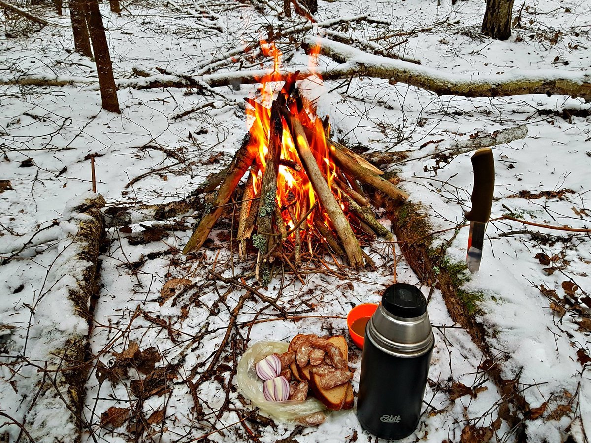 Застолье в лесу зимой