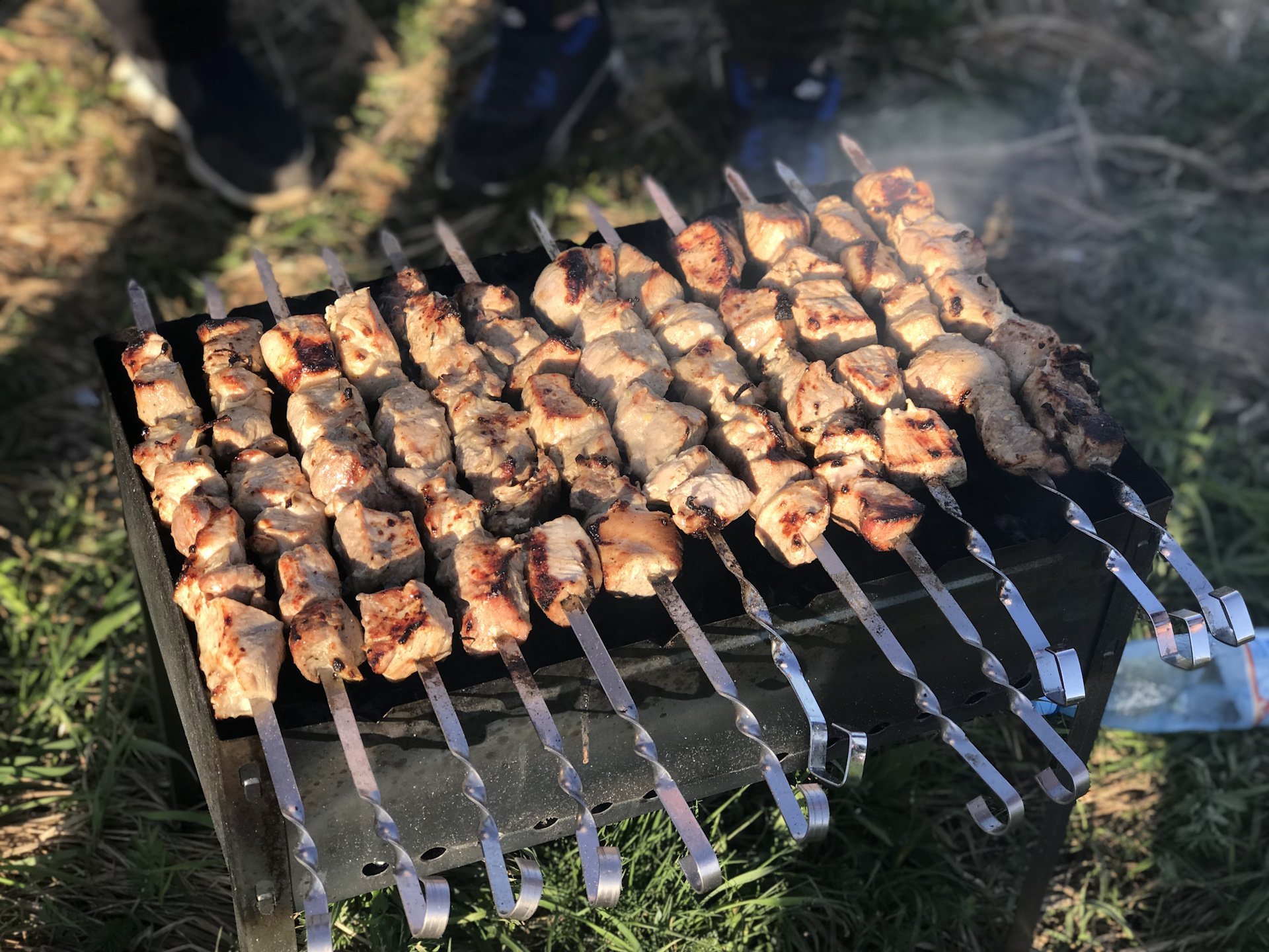 Шашлык на мангале на природе