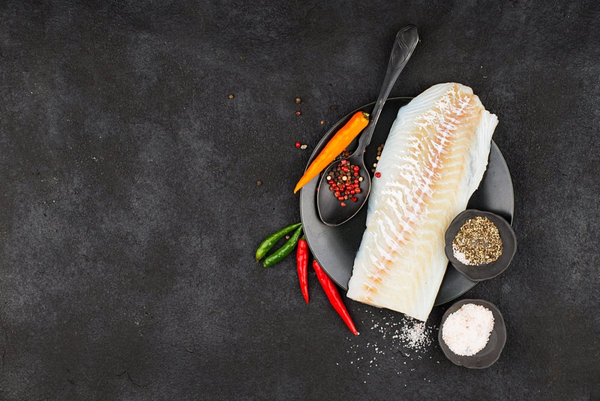 Филе трески на черном фоне