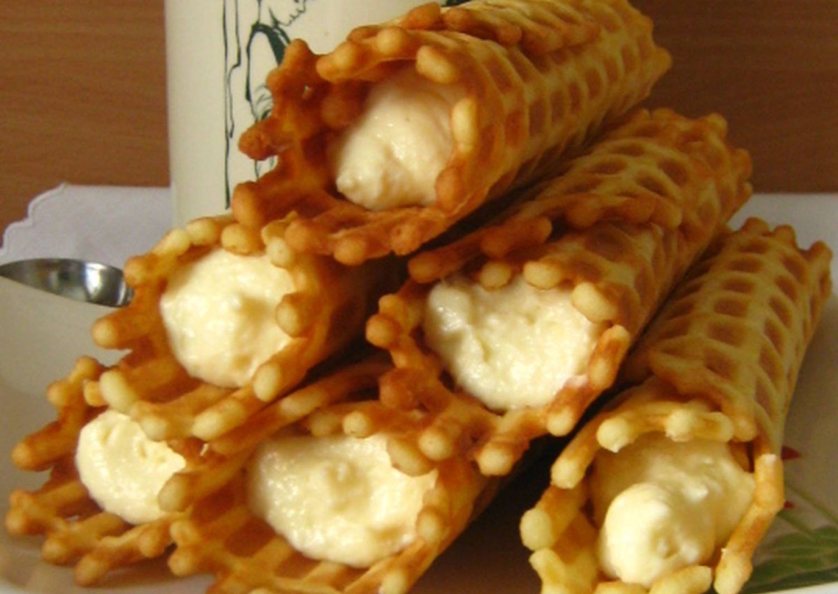Вафельные трубочки с заварным кремом