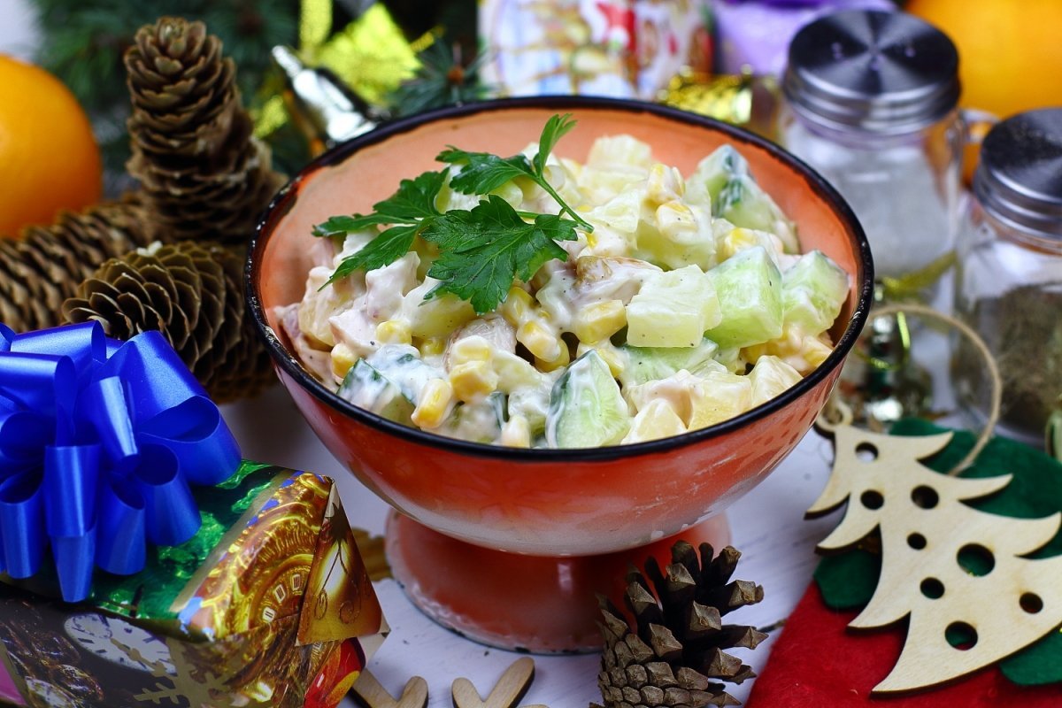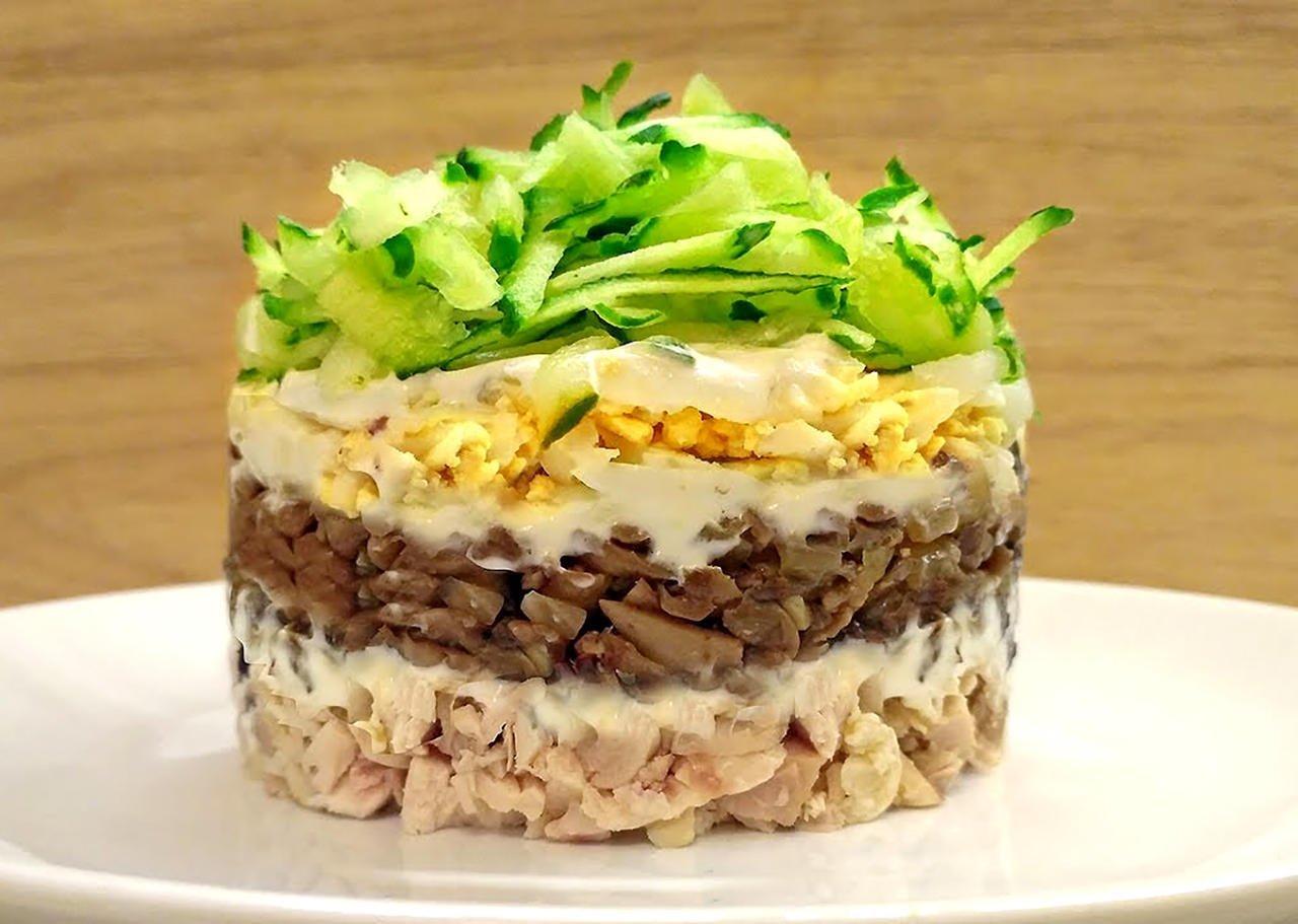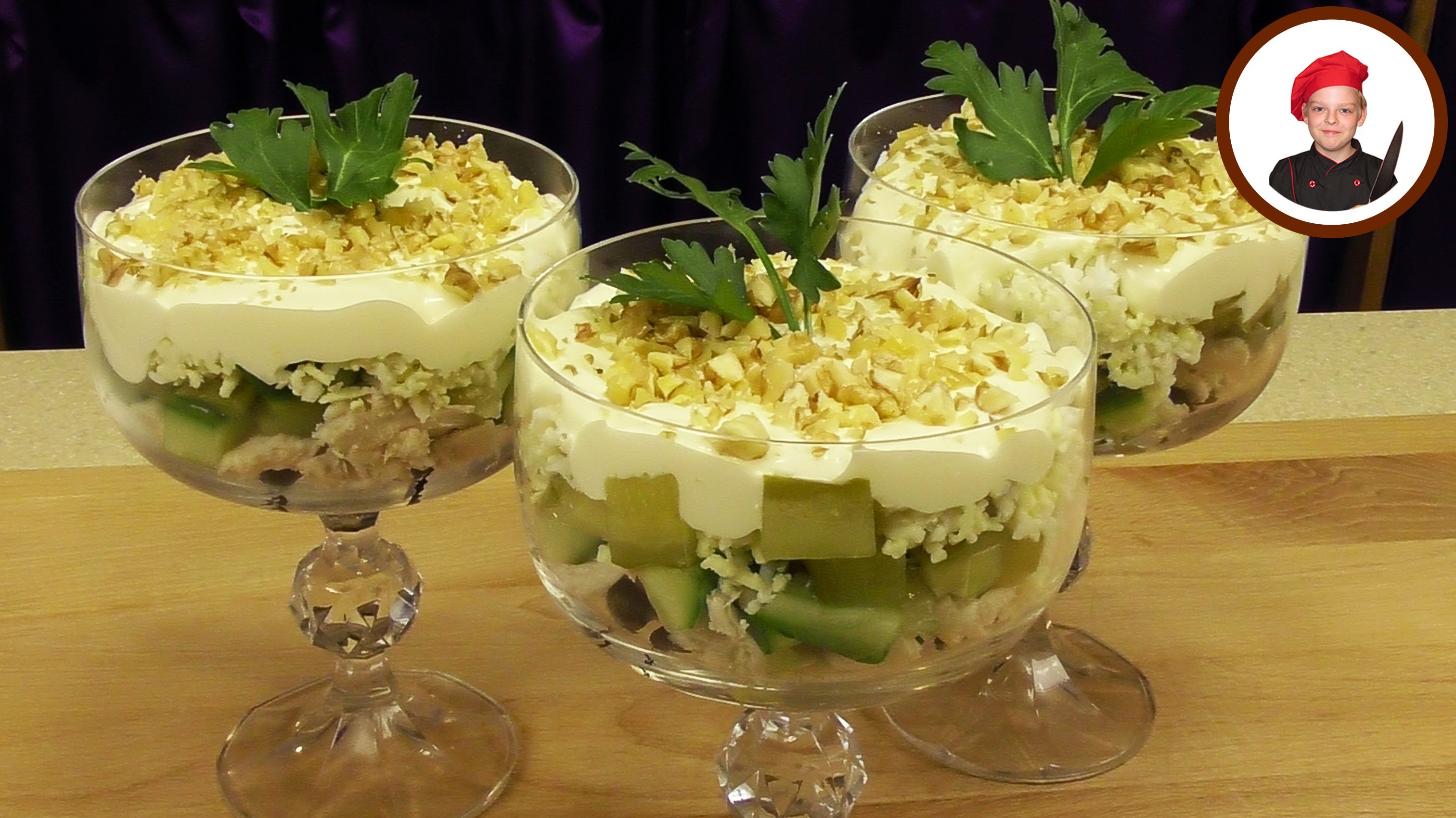 Салат Виноградная гроздь с копченой курицей и виноградом