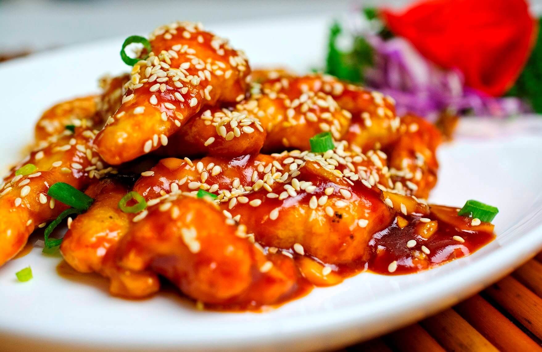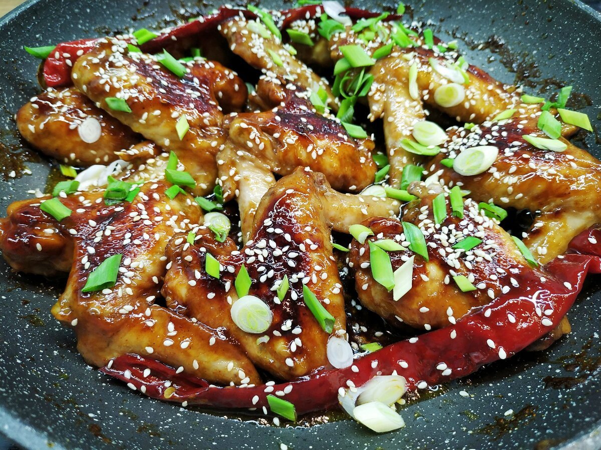 Куриные крылышки в сладком соусе с кунжутом