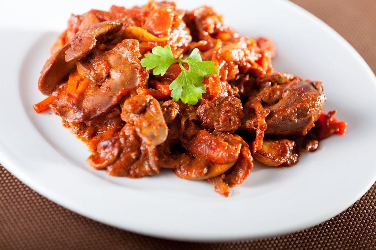 Печень куриная тушеная