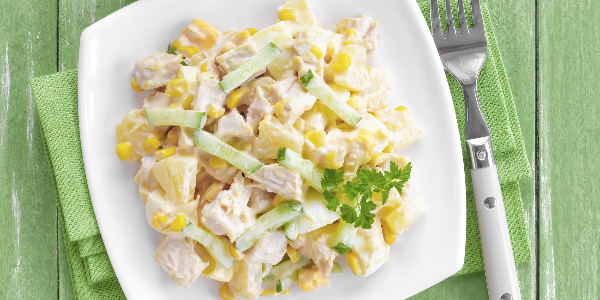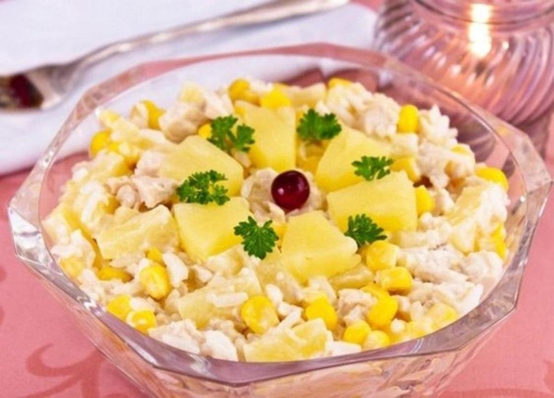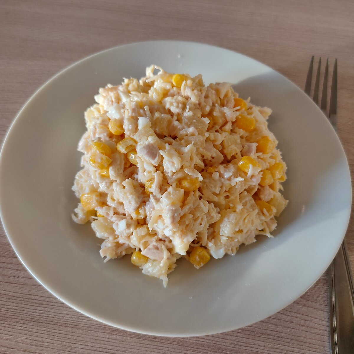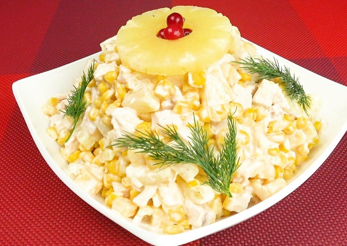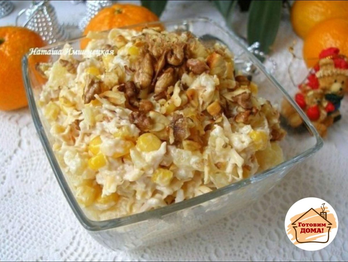 Салат из пекинской капусты с ананасом и курицей и кукурузой