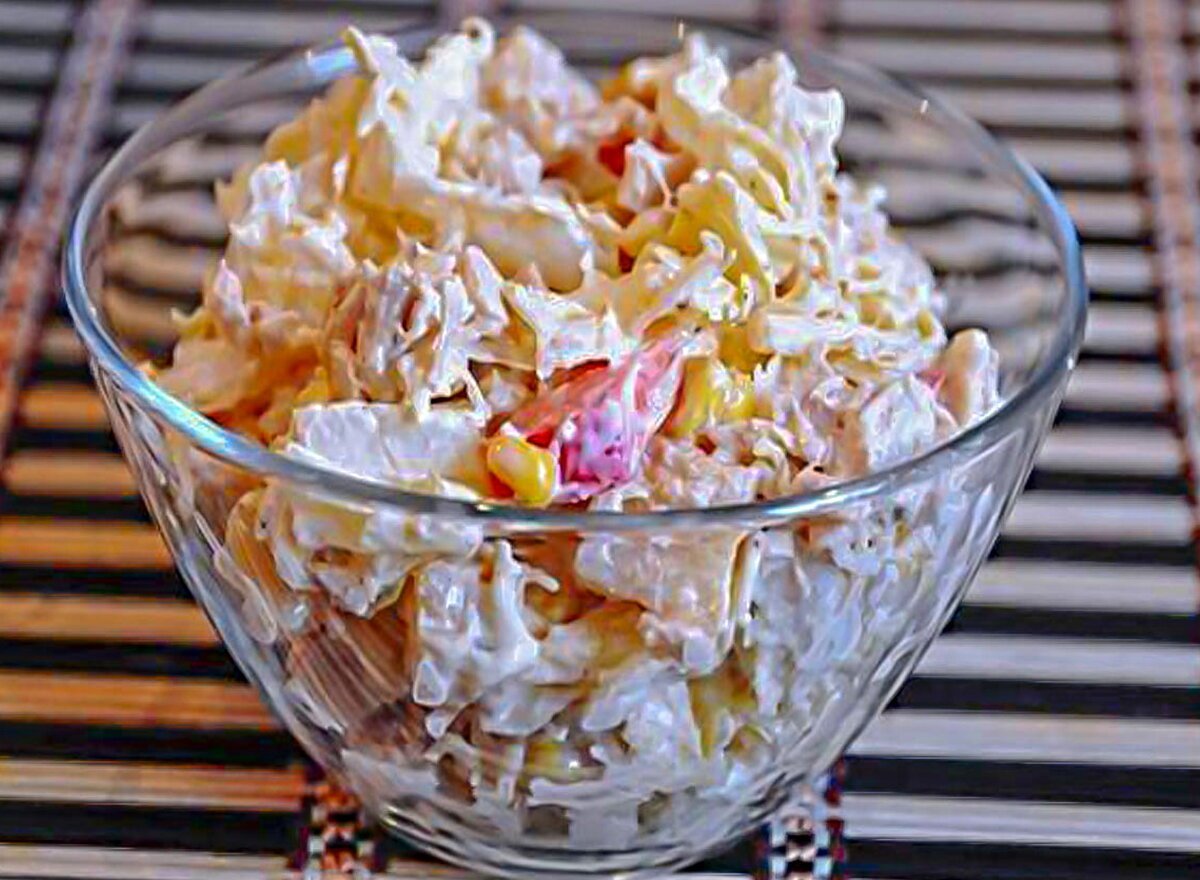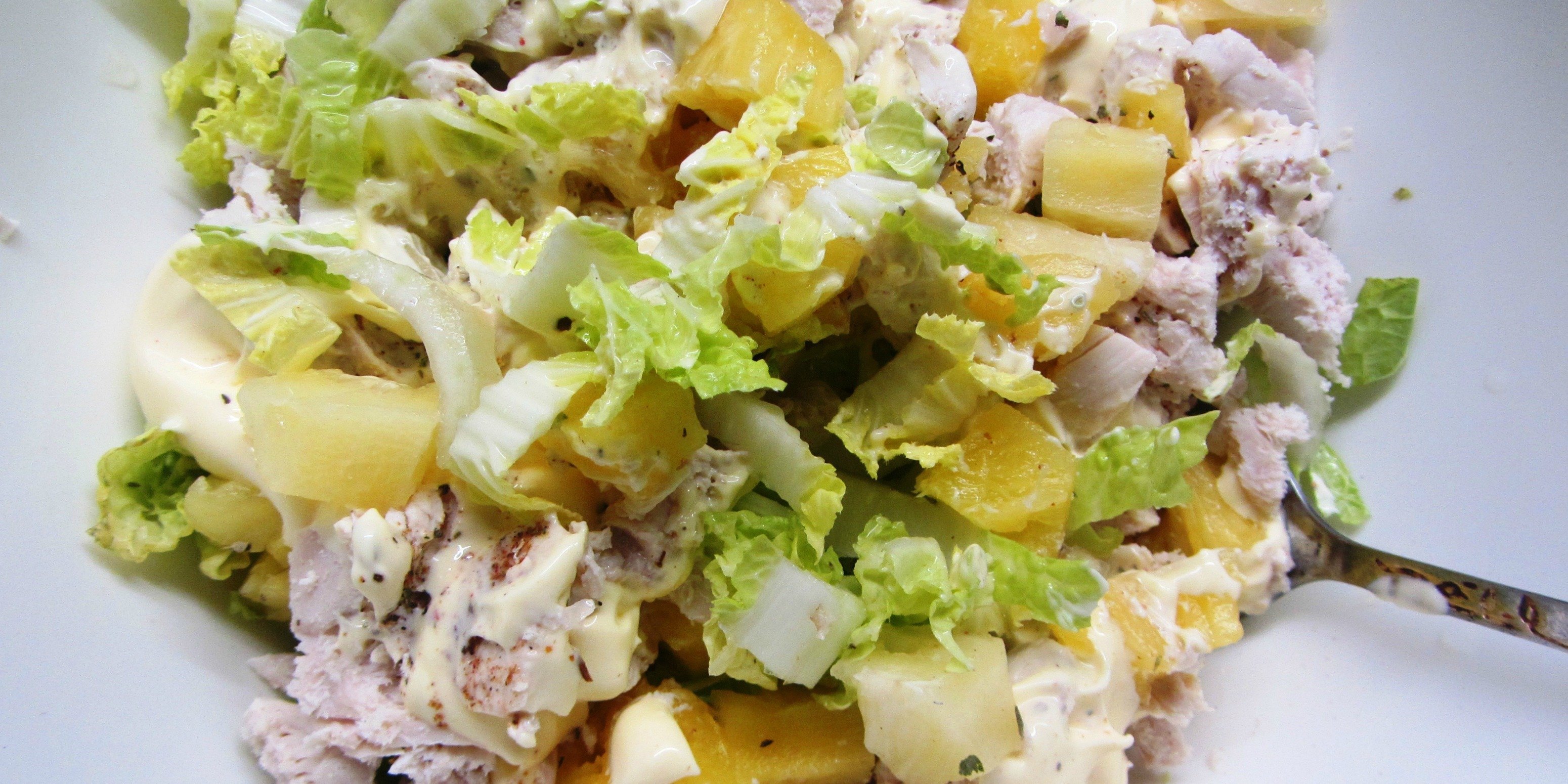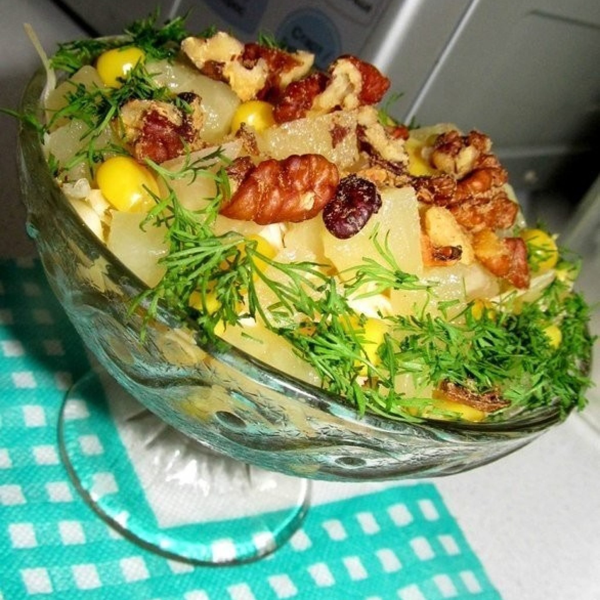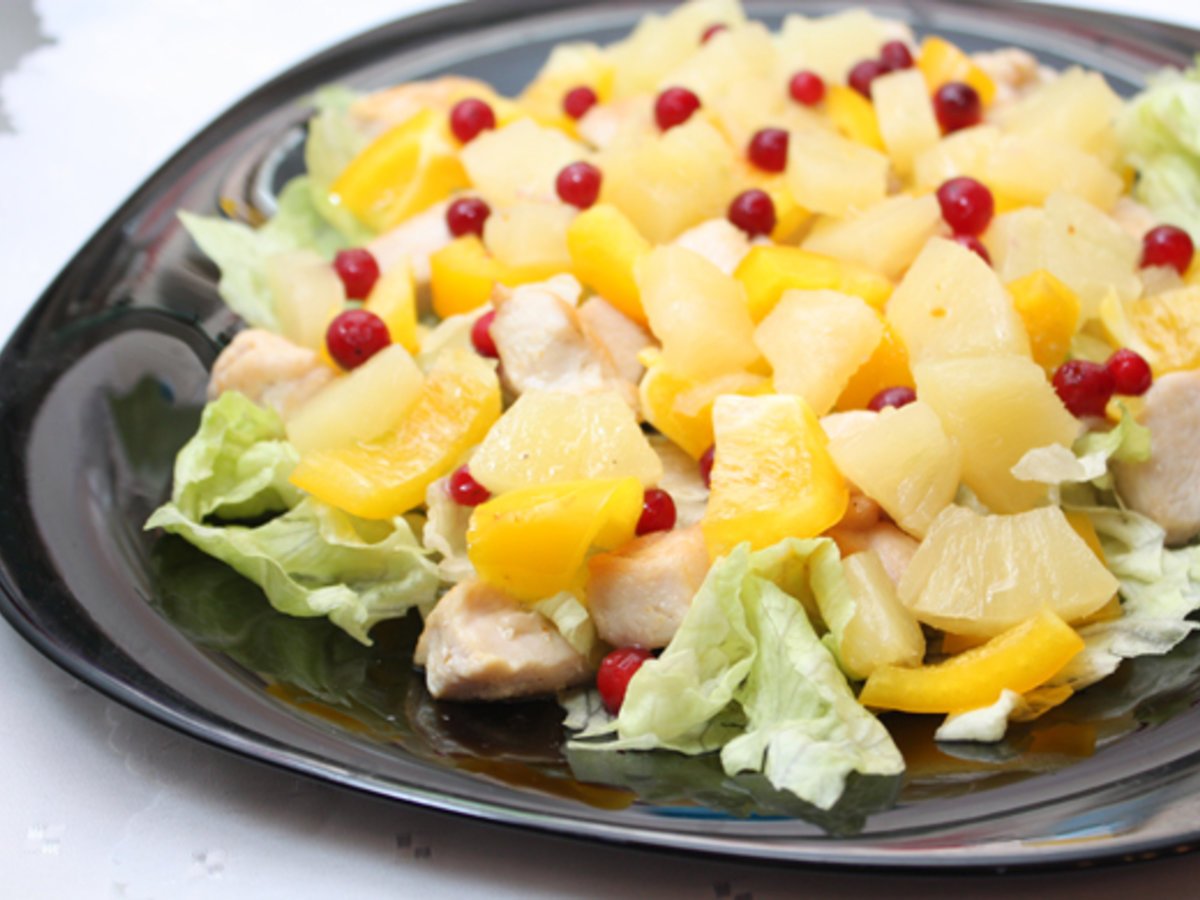 Салат из пекинской капусты с ананасом и курицей и кукурузой
