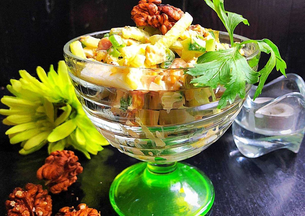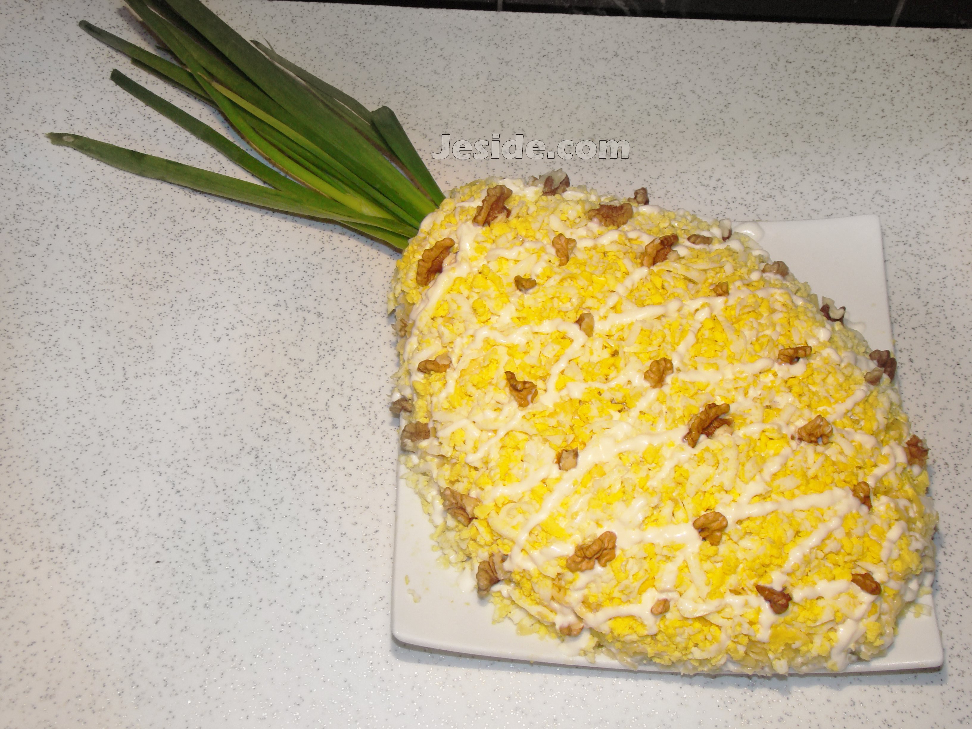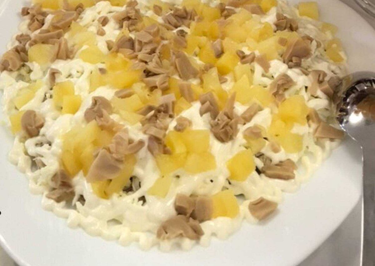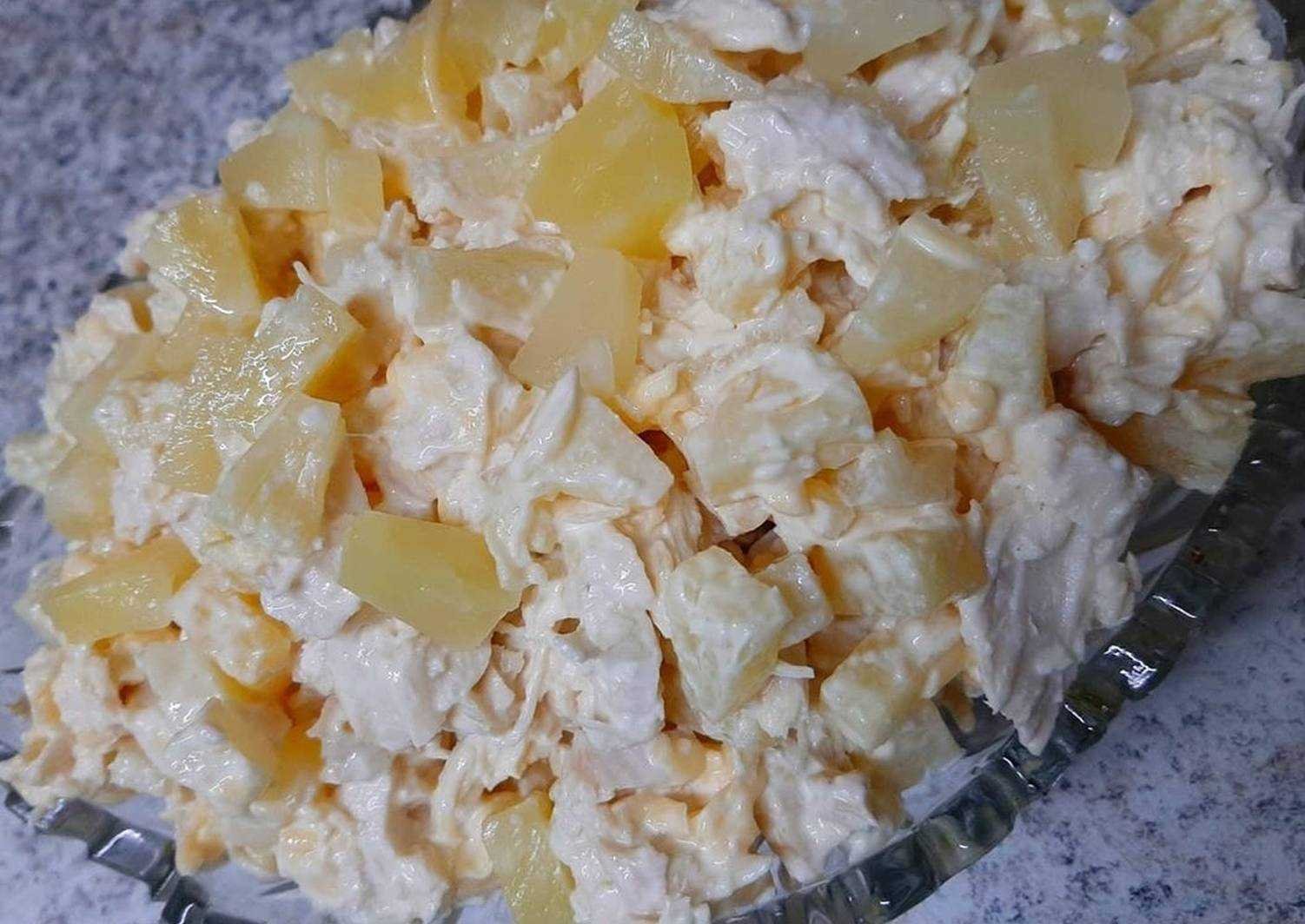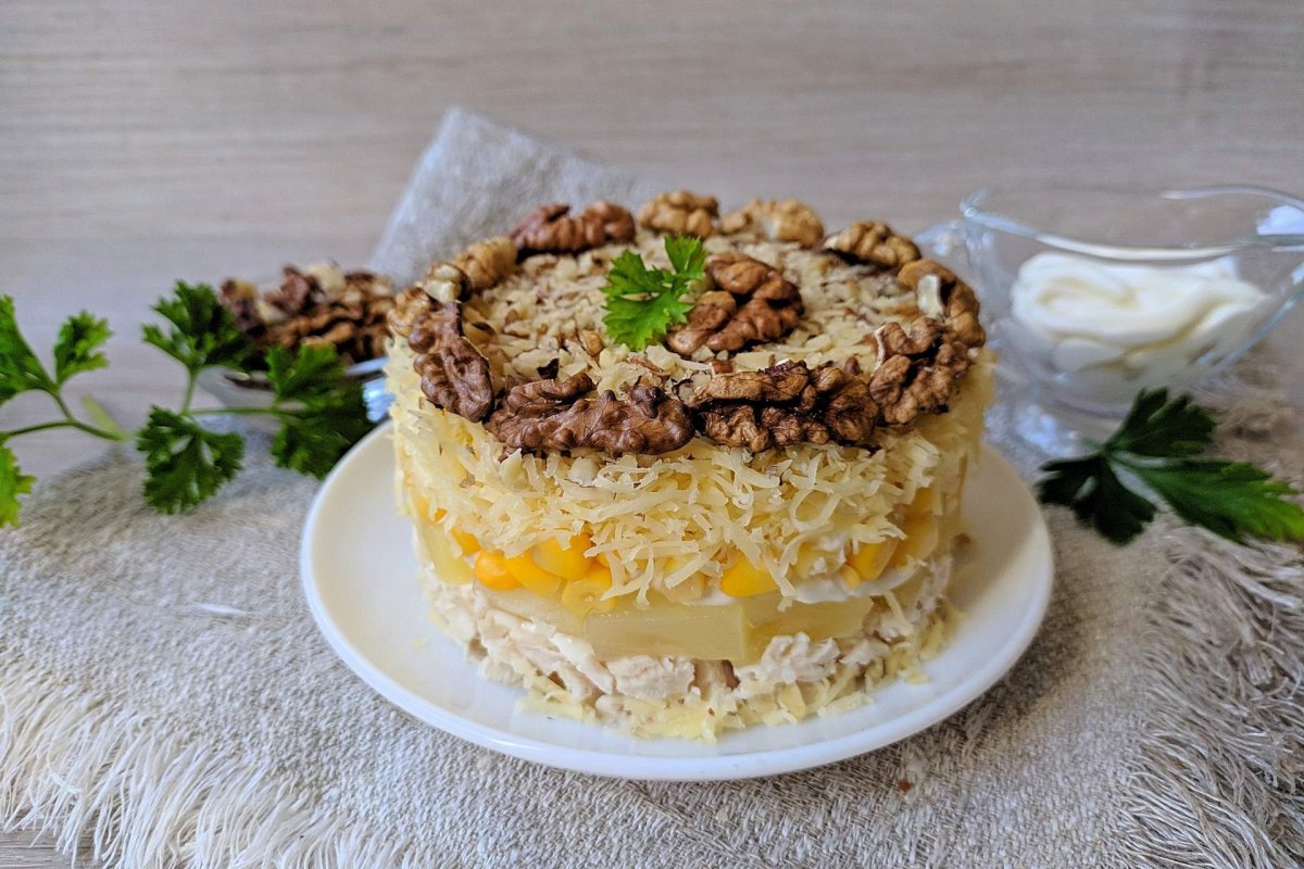 Салат из пекинской капусты с ананасом и курицей и кукурузой